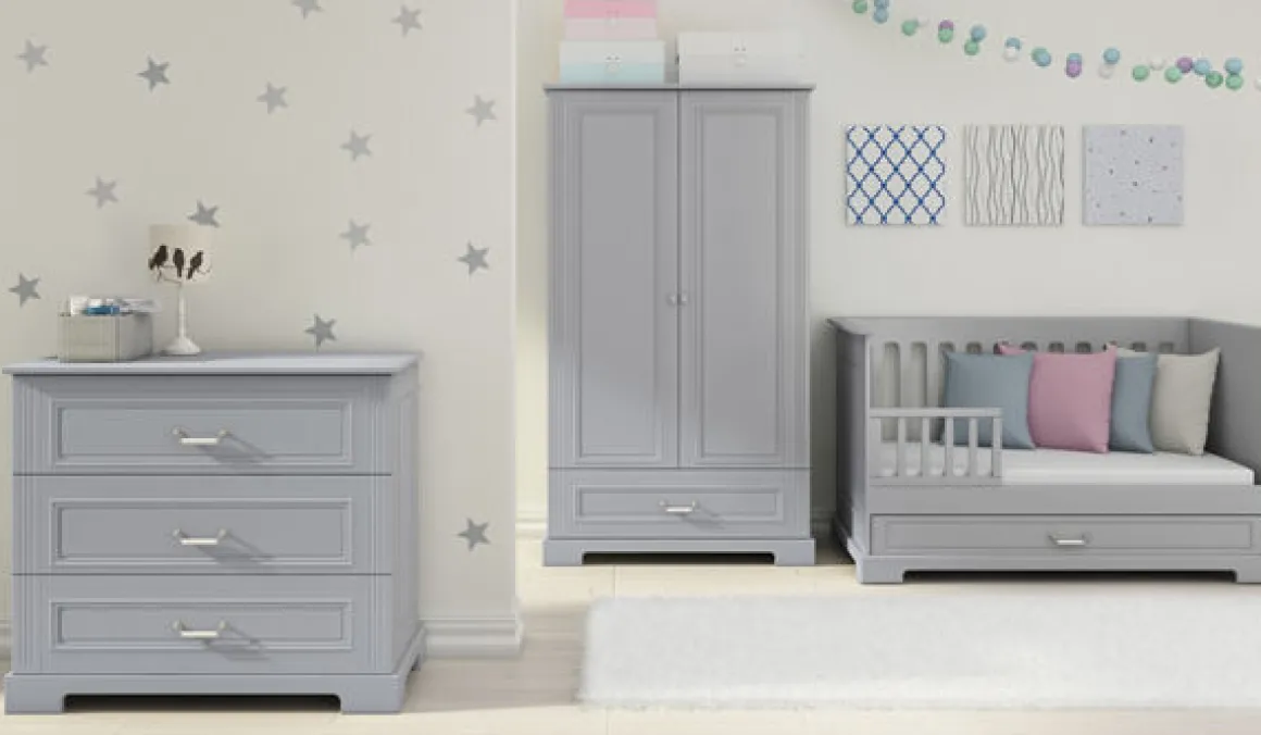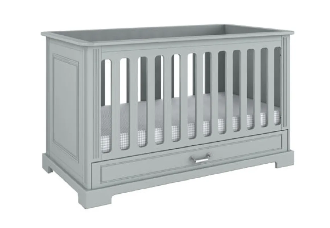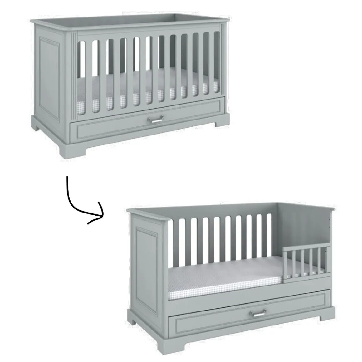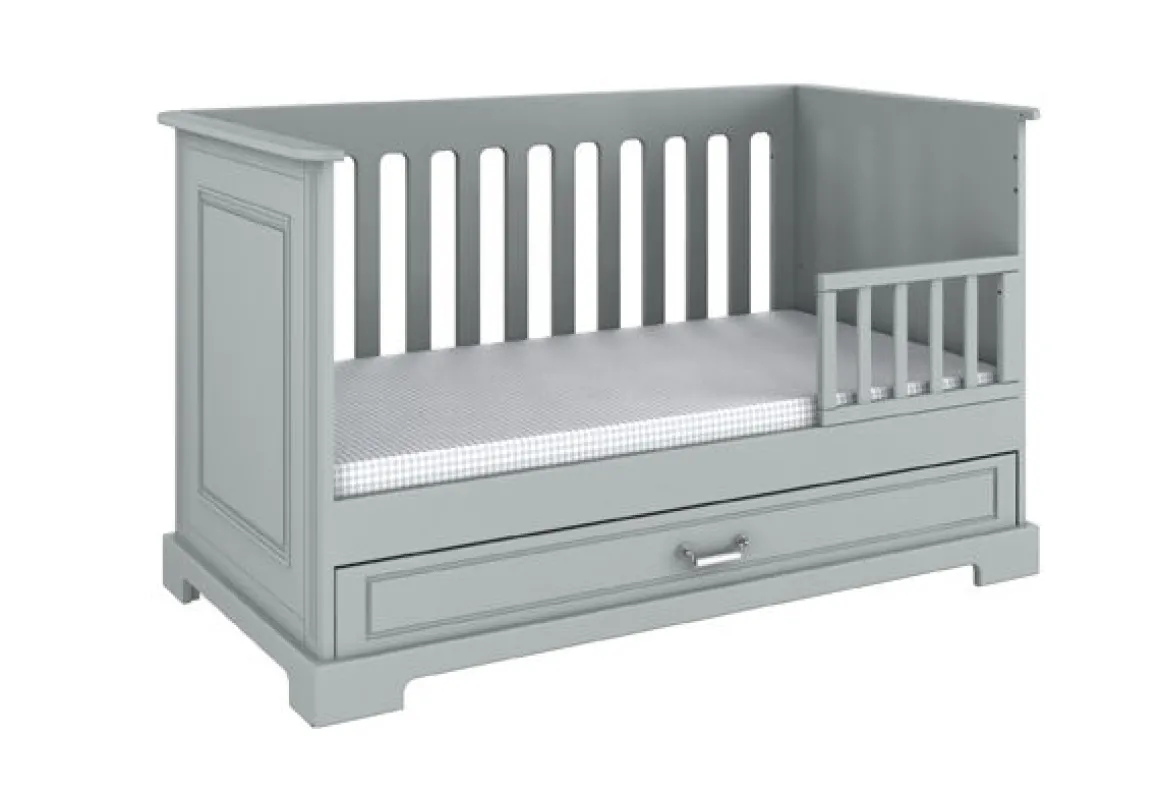 Born Lucky Meegroei Ledikant Ilona Grey is een romantisch, klassiek en tijdloos bed. De sierlijke lijsten geven het bed een unieke en bijzondere uitstraling. De bodem van het ledikant is verstelbaar in 3 hoogtes. Wanneer je kindje uit het baby bed groeit kan het worden omgebouwd tot peuterbed, zodat je kindje zelf in- en uit het bed kan stappen.