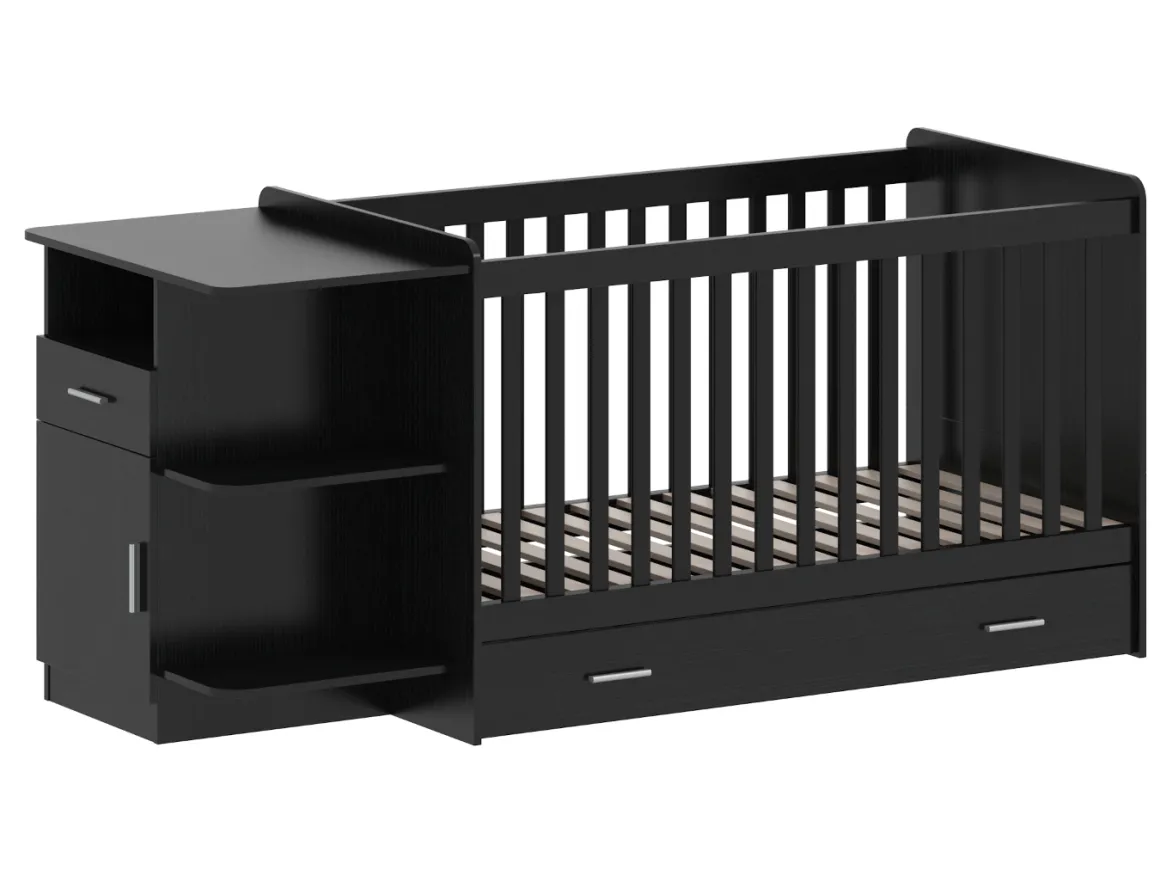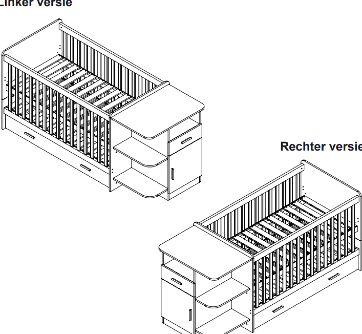 Het ledikant is voorzien van een handig kastje en een opberglade. Dit zorgt voor extra opbergruimte in de babykamer. Gebruik je de kast en de lade niet? Deze kunnen ook eenvoudig worden weggehaald.
