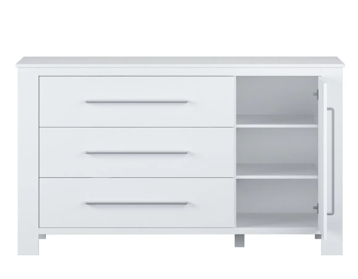Deze commode is voorzien van drie ruime lades waarin je moeiteloos alle babybenodigdheden kunt opbergen. Van luiers en verzorgingsproducten tot kleding en beddengoed, alles is overzichtelijk en binnen handbereik. De extra grote handgrepen zorgen ervoor dat de lades eenvoudig te openen en te sluiten zijn, wat het gebruiksgemak vergroot.