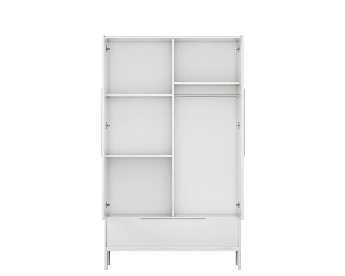 Deze kledingkast biedt volop ruimte om alle kleding en accessoires netjes op te bergen. Met een handig hanggedeelte en meerdere legplanken kun je eenvoudig outfits ordenen en opvouwen. Hierdoor blijft de kamer opgeruimd en overzichtelijk, zodat je altijd snel de juiste kleding bij de hand hebt.