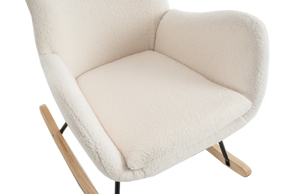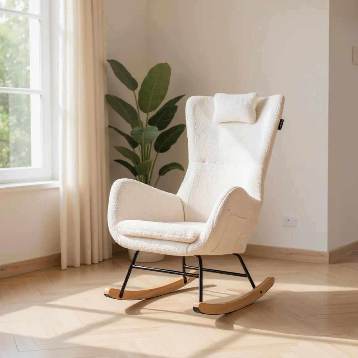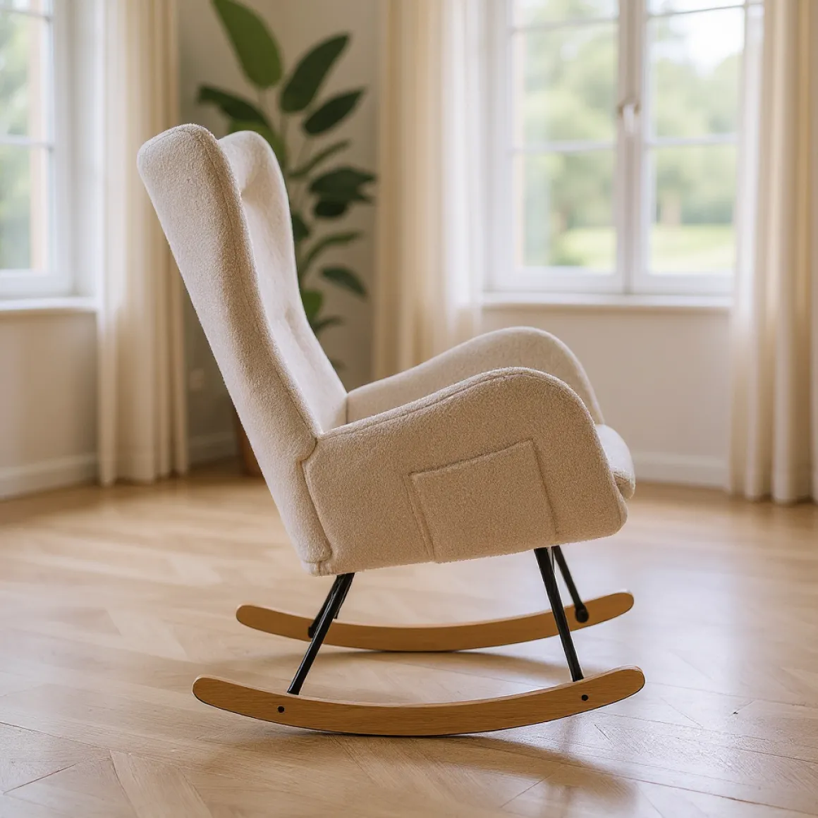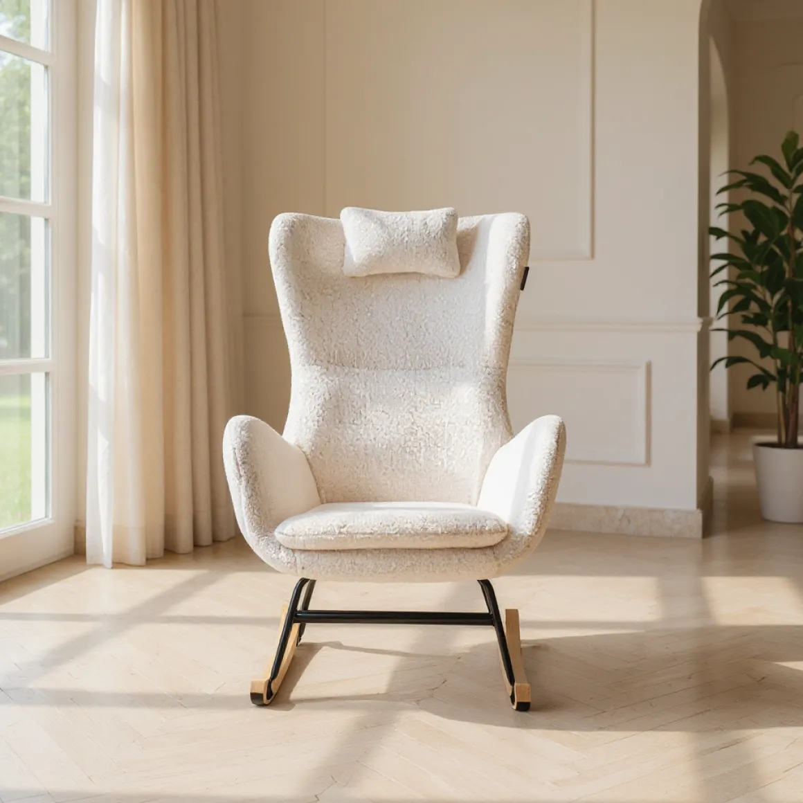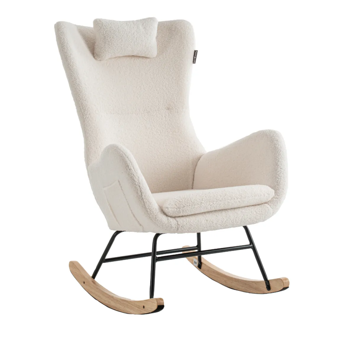 Deze schommelstoel is niet alleen praktisch, maar ook een echte eyecatcher. Dankzij het zachte materiaal en de afgeronde vormen creëer je direct een warme, knusse sfeer in huis. De schommelstoel heeft een stijlvol en tijdloos ontwerp dat past in elk interieur.