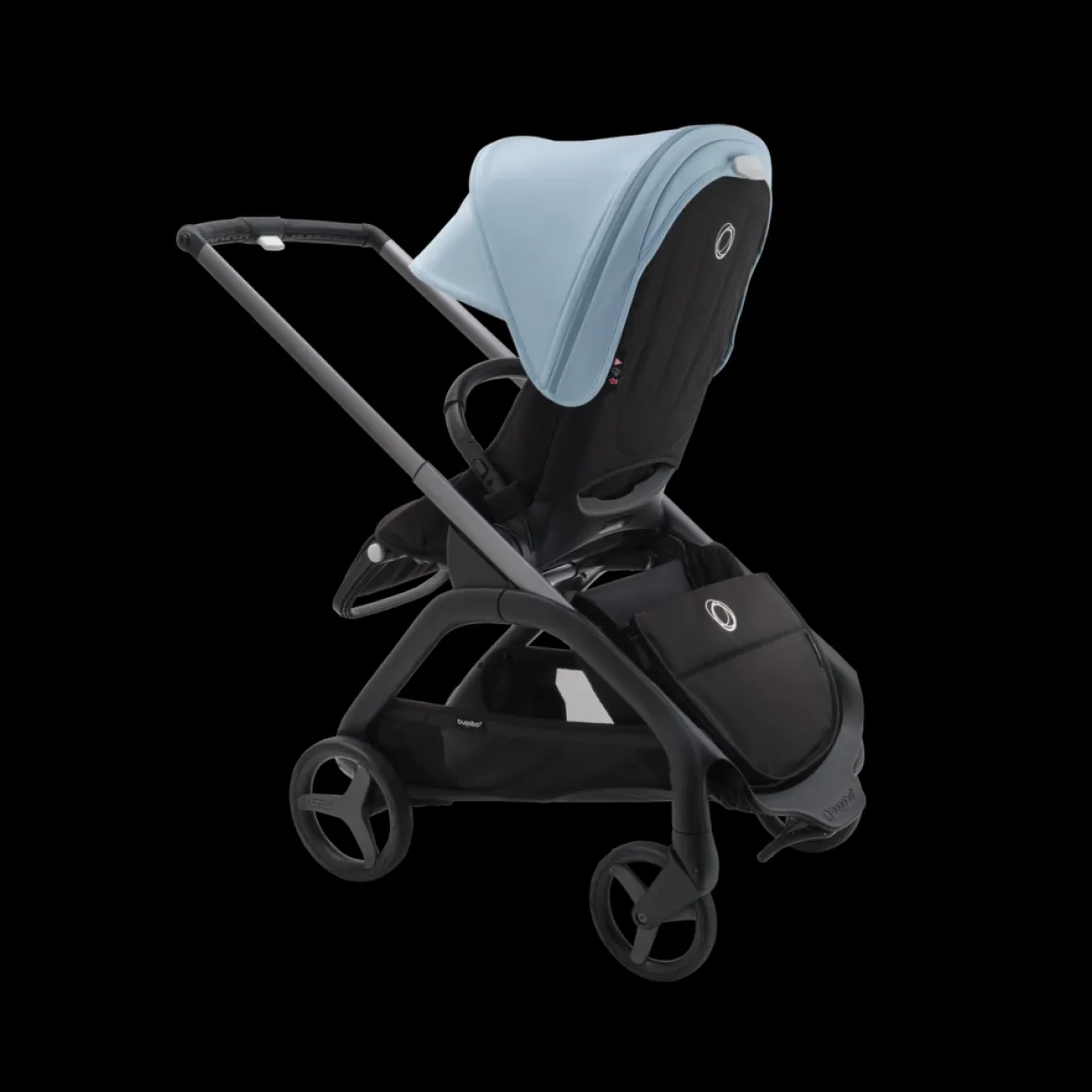 Dankzij het gepatenteerde inklapsysteem kun je de Bugaboo Dragonfly met één hand inklappen – zelfs met de zitting erop. Ingeklapt blijft de kinderwagen zelfstandig staan, wat ideaal is voor kleine woonruimtes of openbaar vervoer. Met een gewicht van slechts 7,9 kg is hij gemakkelijk te dragen met de schouderband of te trekken als een trolley. De XL-bagagemand onder de zitting biedt tot 10 kg opbergruimte, terwijl het verplaatsbare opbergvak extra flexibiliteit biedt voor jouw dagelijkse spullen.