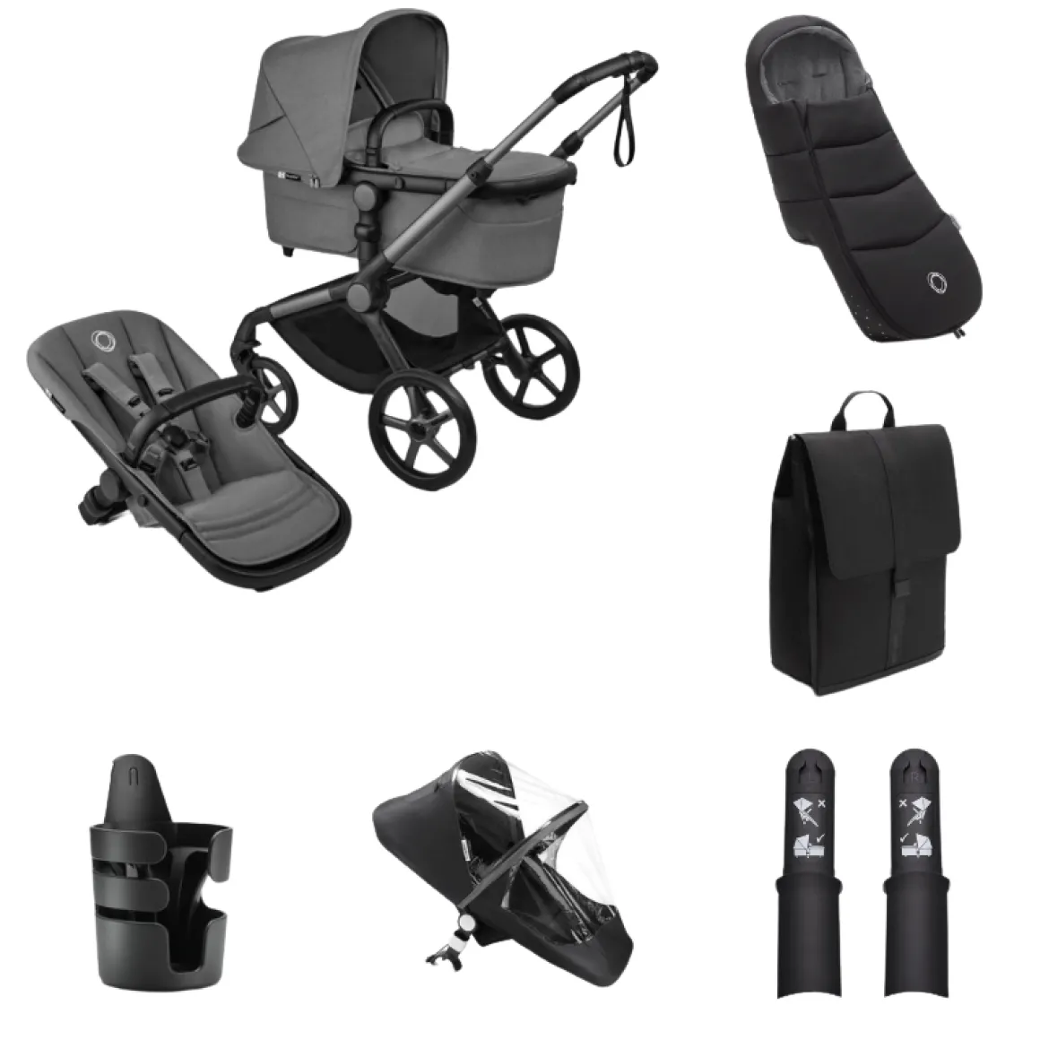 | Inbegrepen accessoires | Onderstel met wielen en handgrepen, zitting, reiswieg, zonnekap, bagagemand, voetenzak, luierrugzak, cupholder, regenhoes en reiswieg hoogte adapters |