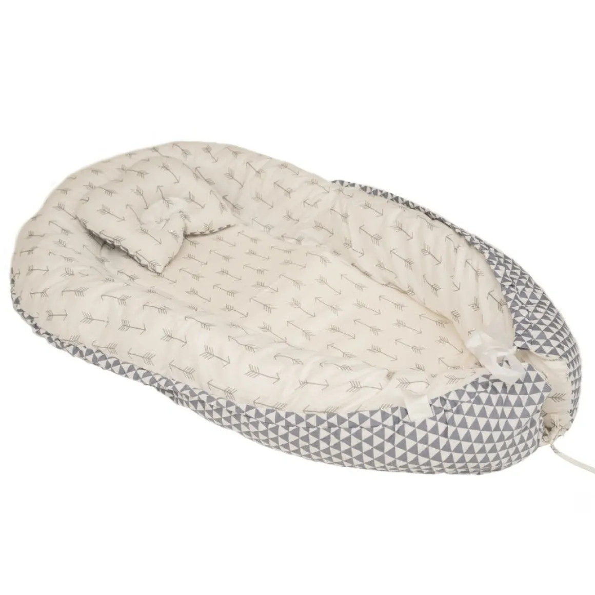 - Het Cabino babynestje Pijltjes Wit Grijs is voorzien van een vrolijke print en een zachte stof