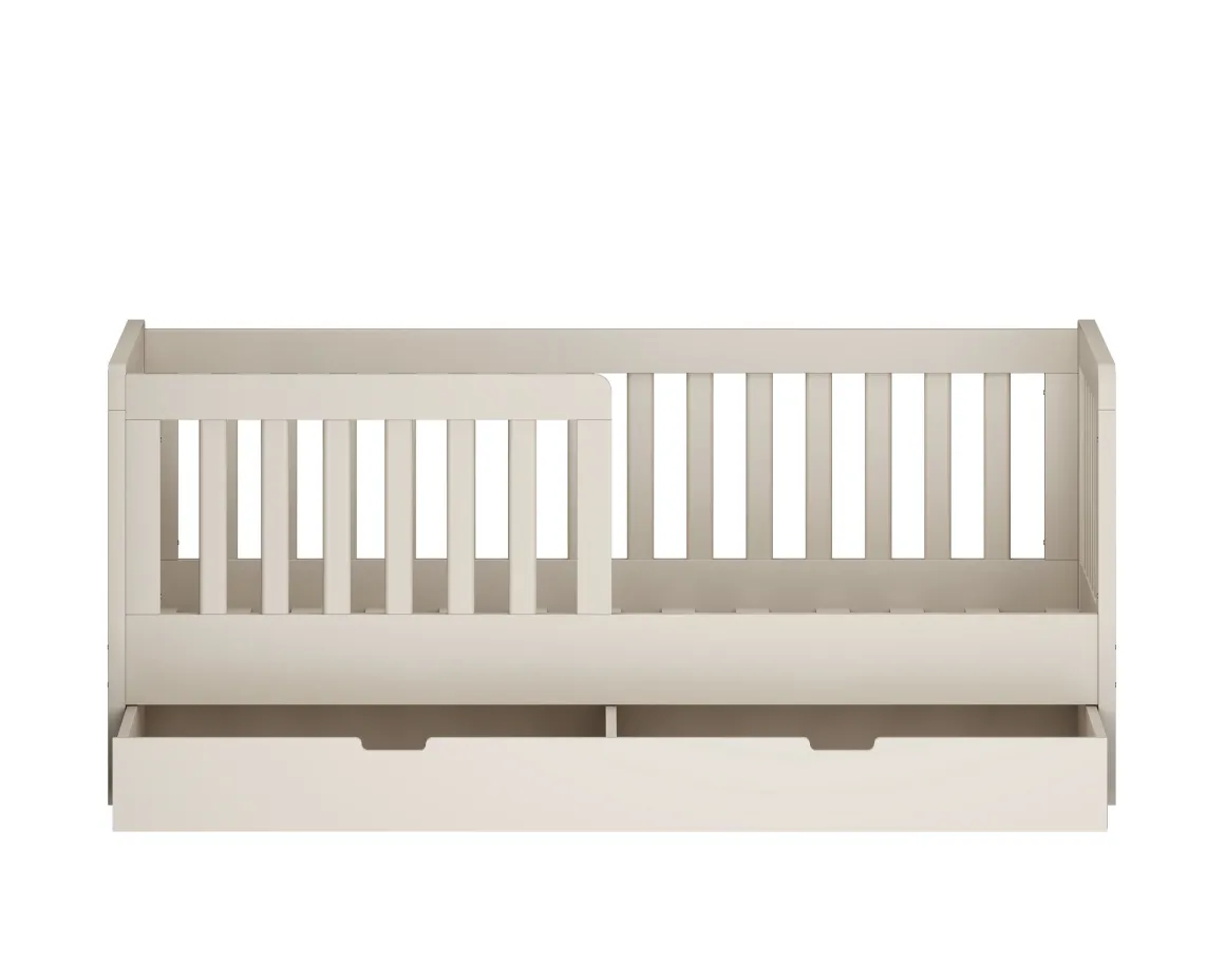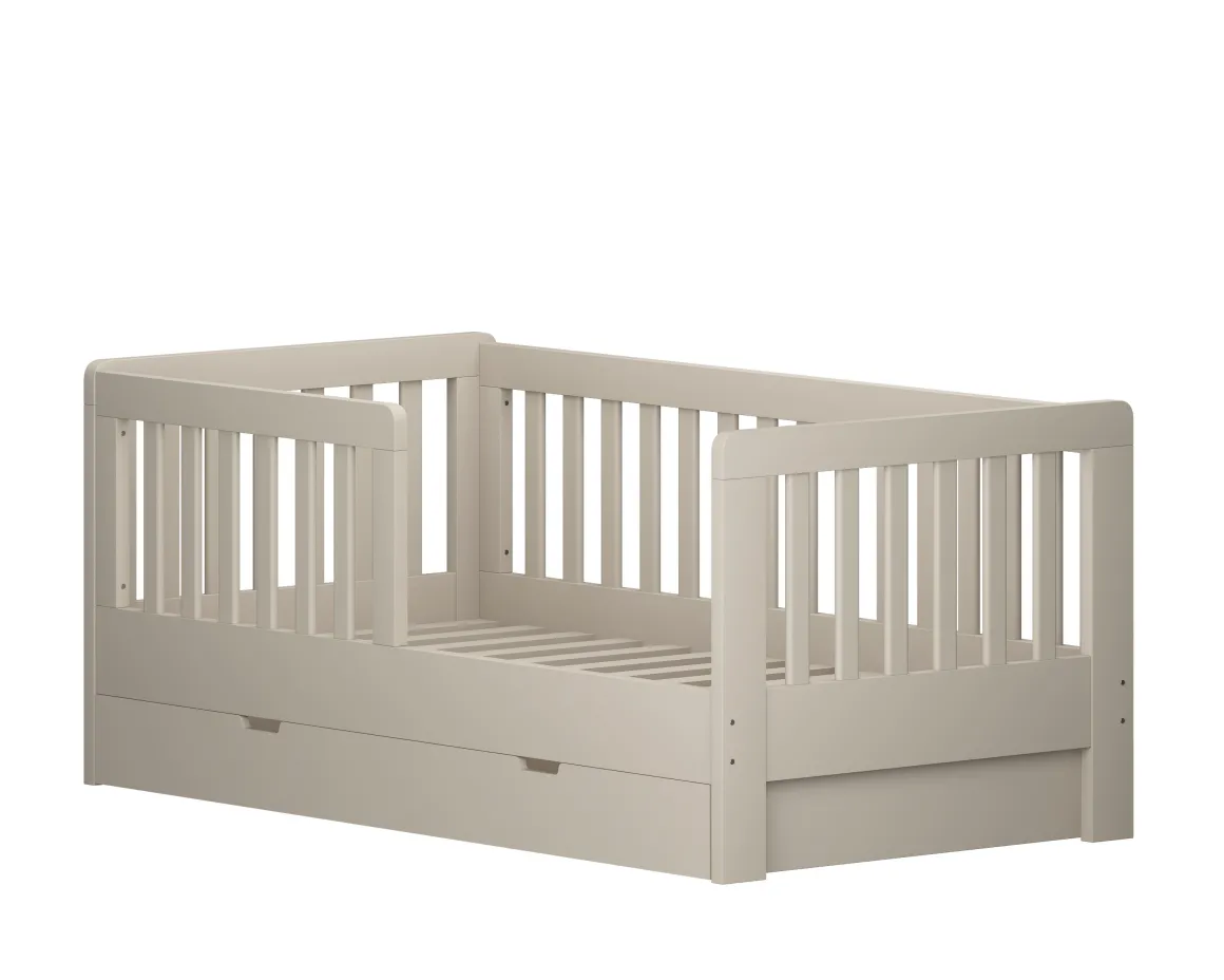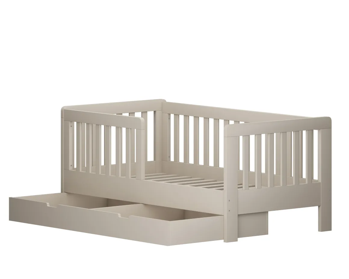 Peuterbed Joan biedt een veilige en stijlvolle slaapplek voor je kindje. Het peuterbed heeft een stijlvolle neutrale kleur, waardoor het mooi zal staan in iedere ruimte. Het bed biedt niet alleen optimaal comfort, maar ook slimme opbergruimte dankzij de handige lade onder het bed. Hierin kan speelgoed, beddengoed of wat anders overzichtelijk worden opgeborgen. Ideaal voor een opgeruimde kinderkamer!Â