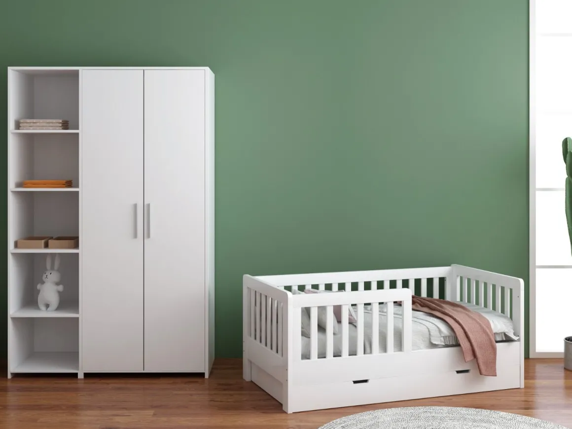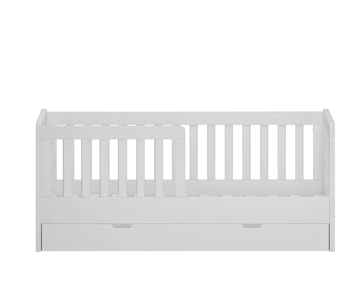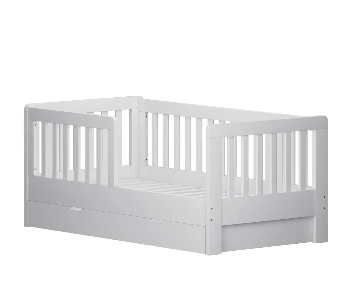 Peuterbed Joan biedt een veilige en stijlvolle slaapplek voor je kindje. Het peuterbed heeft een strakke witte kleur, waardoor het mooi zal staan in iedere ruimte. Het bed biedt niet alleen optimaal comfort, maar ook slimme opbergruimte dankzij de handige lade onder het bed. Hierin kan speelgoed, beddengoed of wat anders overzichtelijk worden opgeborgen. Ideaal voor een opgeruimde kinderkamer!