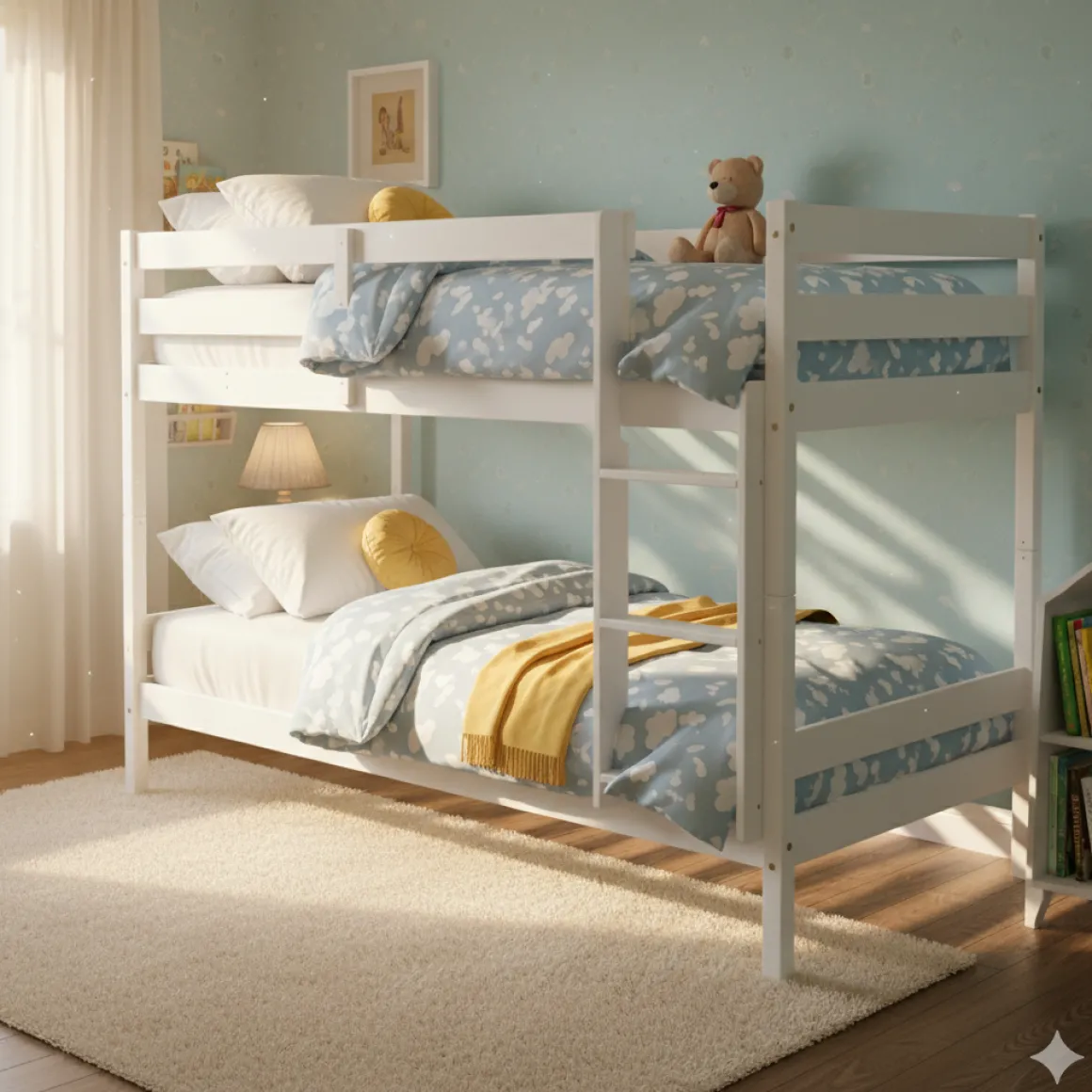De frisse witte kleur van het Casper stapelbed zorgt voor een rustige en tijdloze uitstraling die past bij vrijwel elke interieurstijl. Of de kamer nu kleurrijk, minimalistisch of speels is ingericht, het bed vormt altijd een mooie basis. De strakke lijnen en solide afwerking geven het bed een moderne uitstraling, terwijl het tegelijkertijd warm en huiselijk blijft.