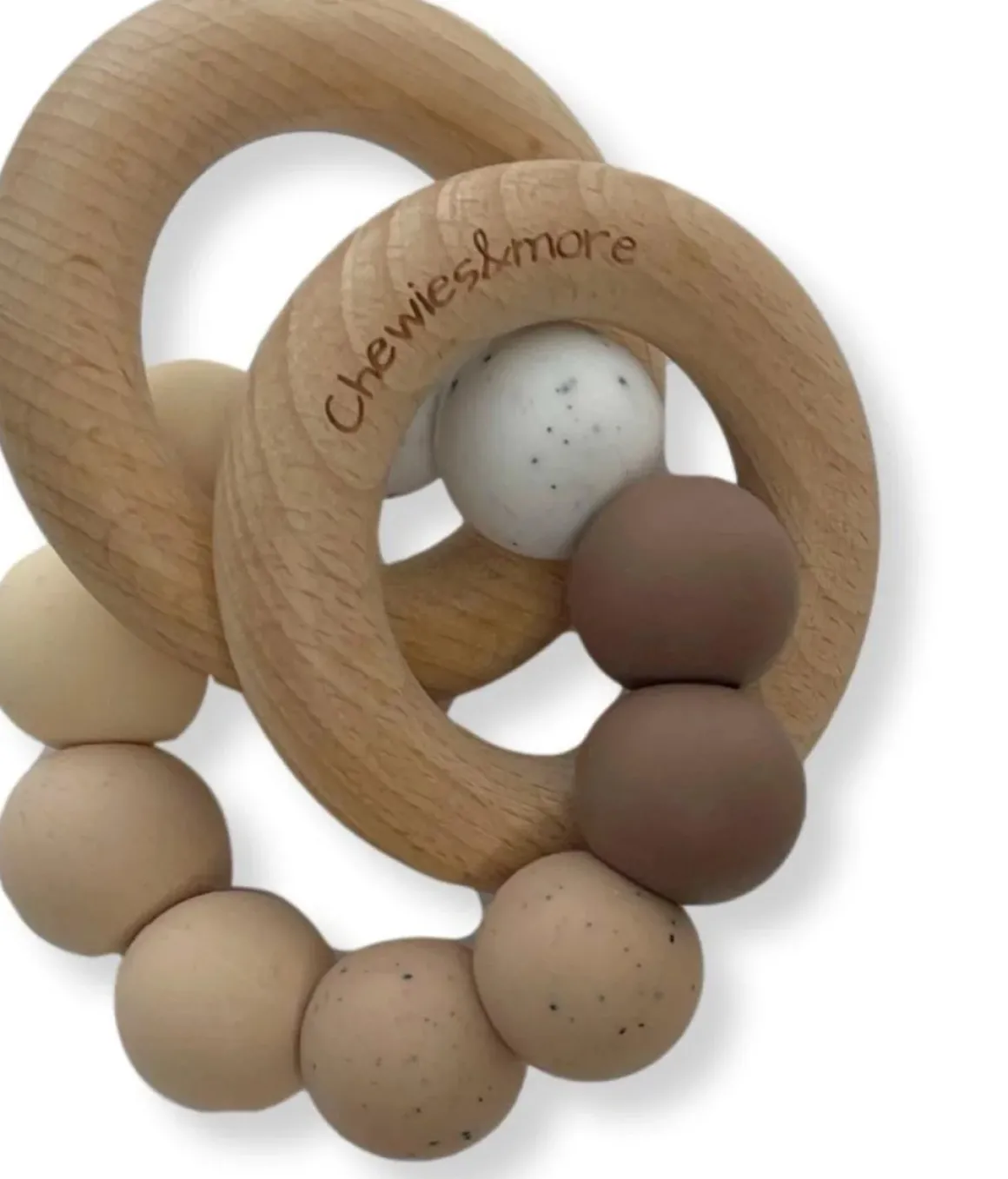 De prachtige Chewie Basic Rattle is gemaakt van zachte siliconen kralen in een Ombre Brown kleurstelling en is voorzien van twee handige ringen vervaardigd van beukenhout. De Chewie is geschikt voor baby’s vanaf 0 maanden en heeft een handzaam formaat van ongeveer 15 cm, waardoor het gemakkelijk vast te pakken is voor de allerkleinsten.