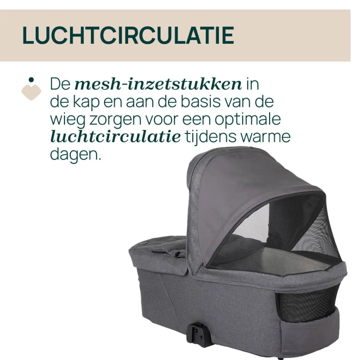 Het goed ademende matras en de zachte bekleding van de reiswieg zorgen voor een geborgen gevoel en optimale ondersteuning van het lichaam van je kindje.