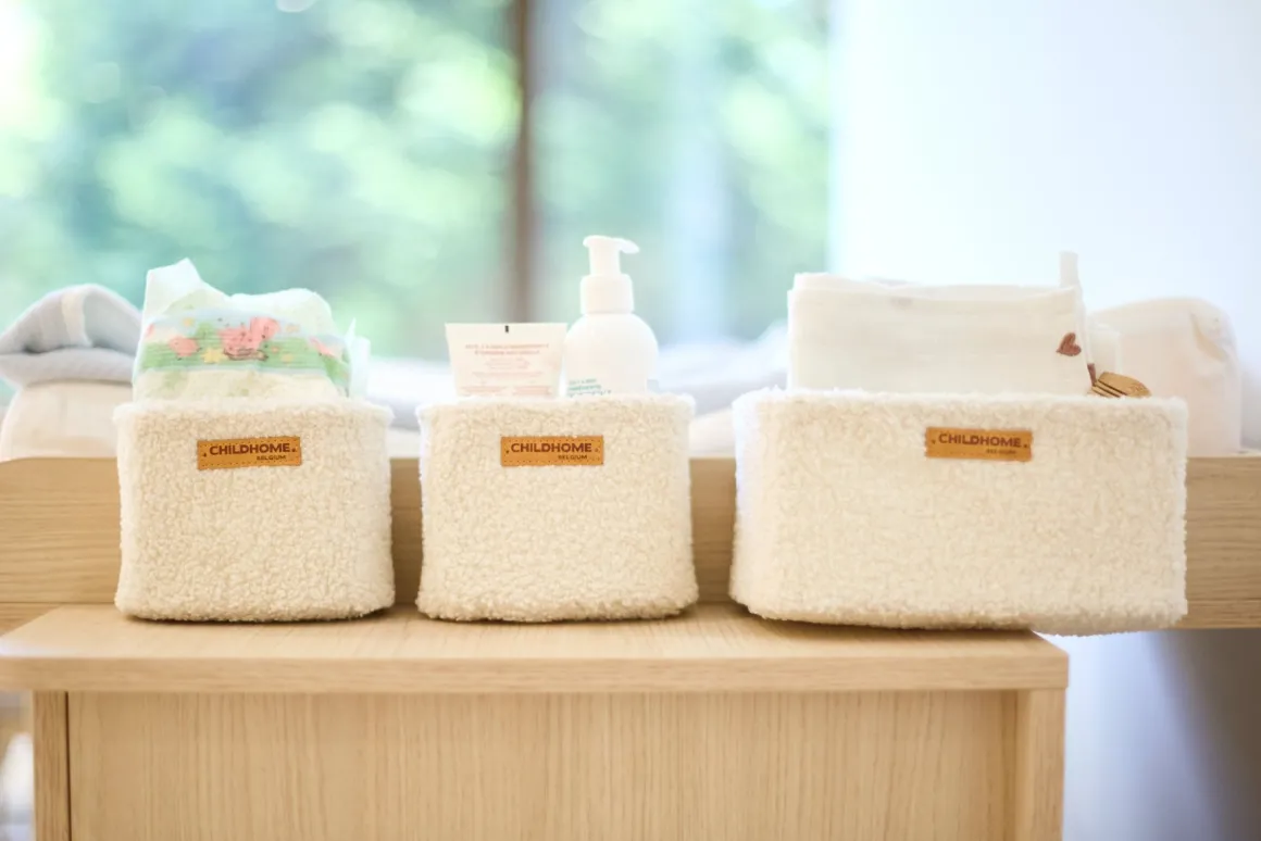 Houd de baby- of kinderkamer netjes en georganiseerd met de Childhome Set Van 3 Hangmandjes Teddy Ecru. De mandjes zijn ideaal voor het opbergen van luiers, verzorgingsdoekjes, speelgoed en meer. Met hun zachte, gezellige teddy stof in een ecru kleur voegen de mandjes niet alleen functionaliteit toe, maar ook een warme en decoratieve touch aan de kamer.Â