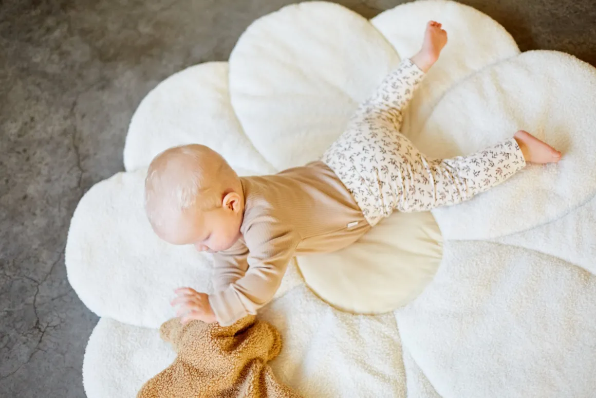 Het Childhome Speeltapijt Bloem is gemaakt van hoogwaardige, zachte teddystof, waardoor het een comfortabele en veilige speelplek biedt voor je kindje. Met een royale afmeting van 110.0 x 110.0 x 2.0 cm is er voldoende ruimte voor je kleintje om te kruipen, rollen en spelen. Het zachte materiaal beschermt je kindje tegen harde vloeren en biedt een aangename ondergrond voor allerlei speelse activiteiten.