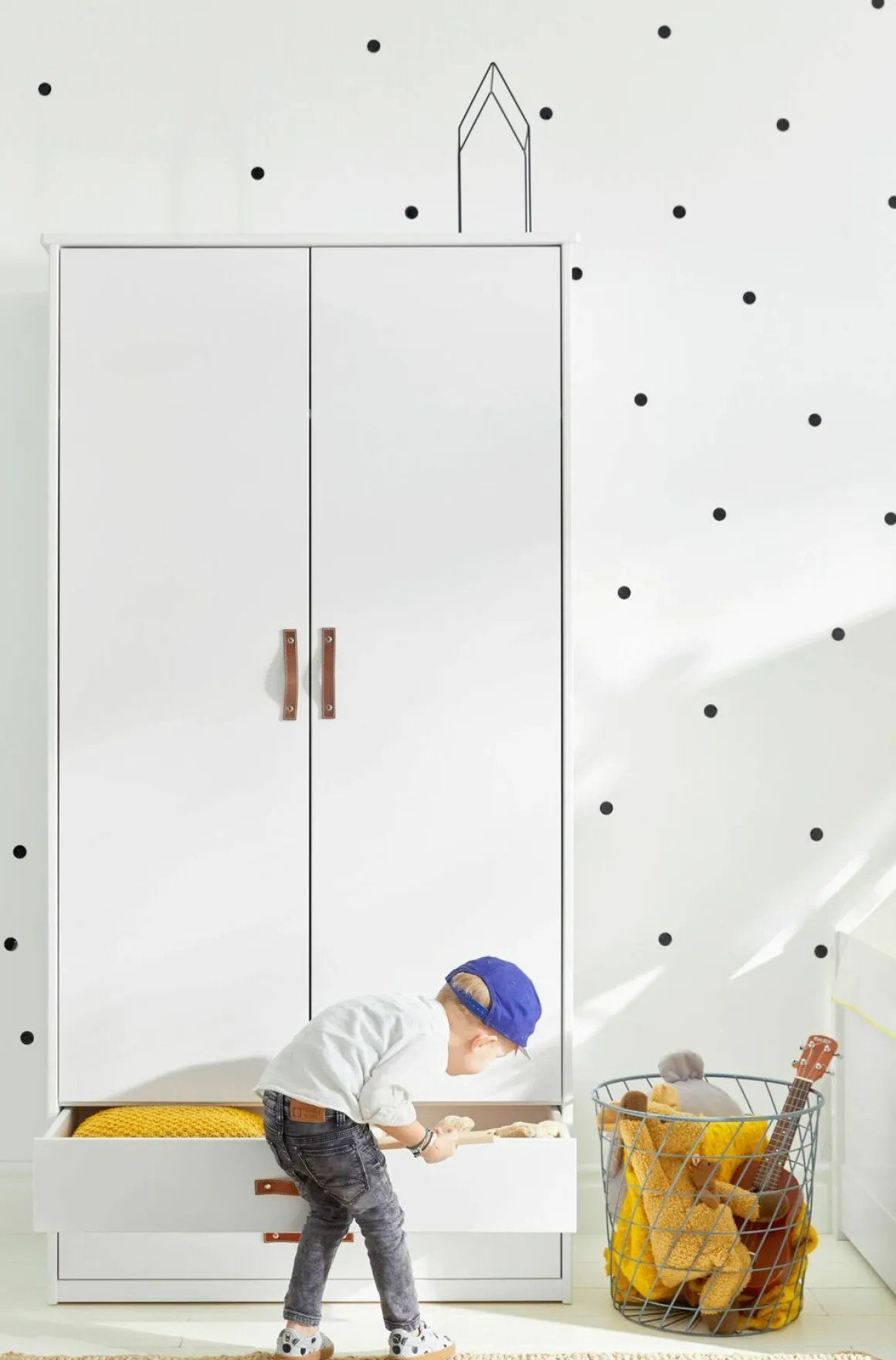 De Cool Kids 2-Deurs Kast is een toffe toevoeging aan iedere kinderkamer! De kledingkast biedt een zee aan opbergruimte en heeft een tijdloos design. De leather-look greepjes maken de kledingkast net een tikje stoerder!