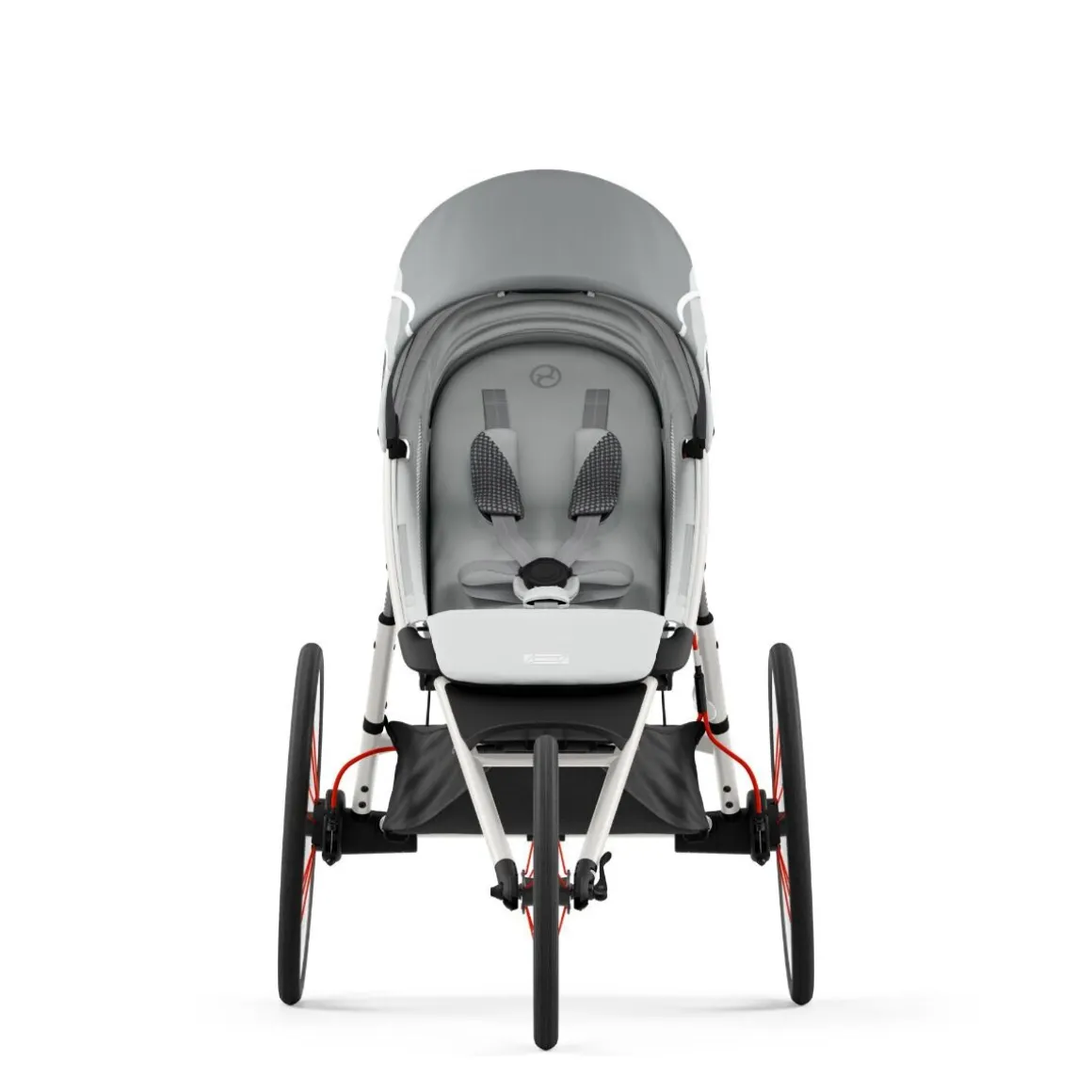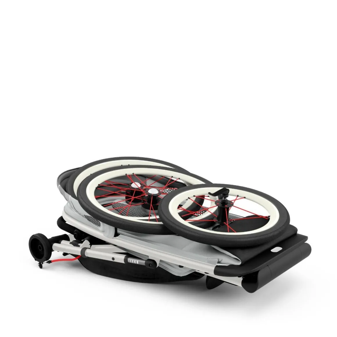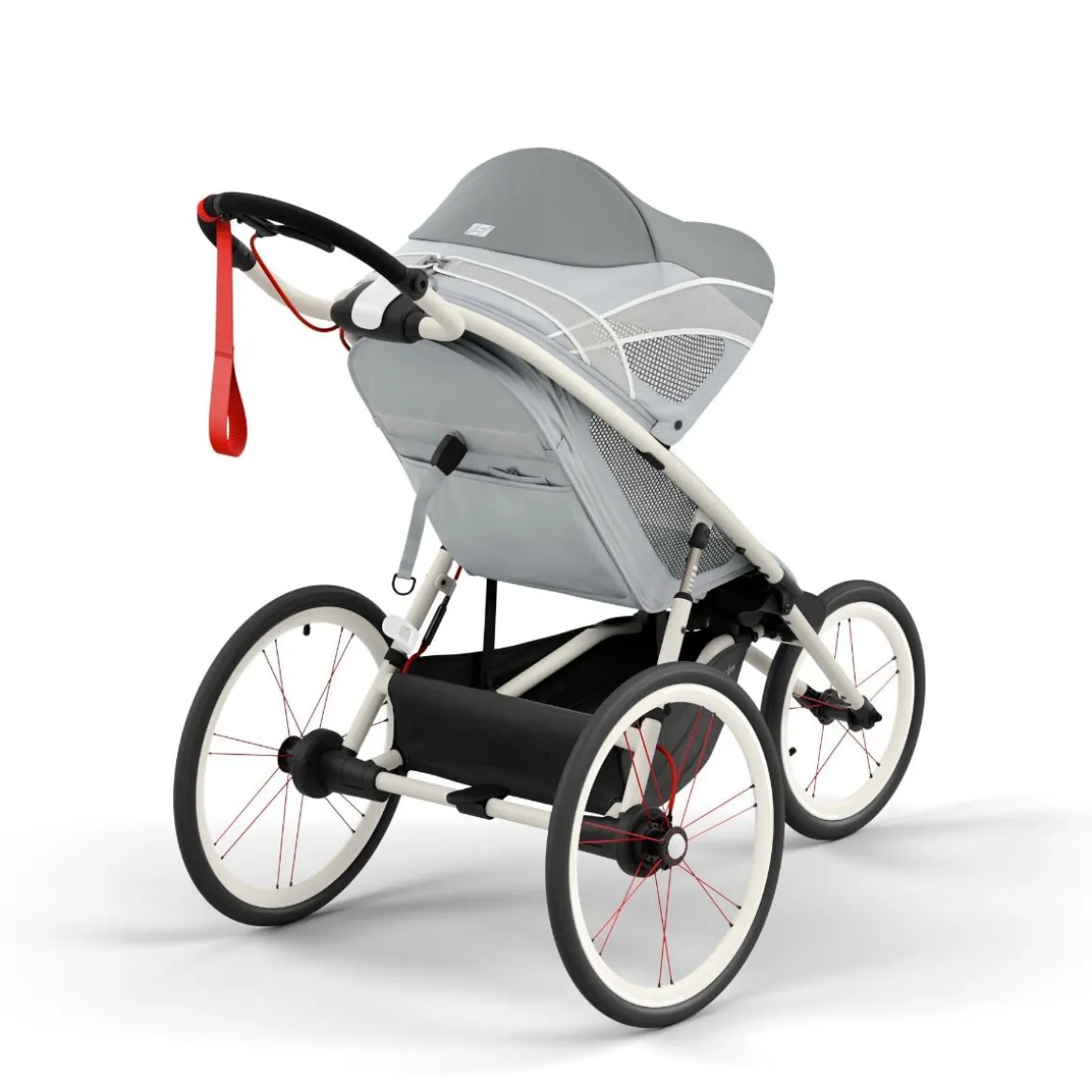 De kinderwagen is voorzien van een veiligheid lus voor tijdens het rennen. De handrem controleert de snelheid en neemt af tijdens afdalingen.