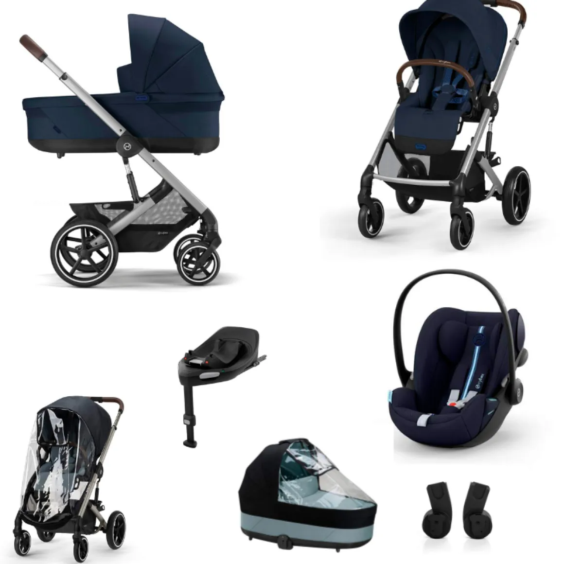 - 3 in 1 kinderwagen met Cybex groep 0 autostoel, autoadapters, Cybex Draaibare Base G en regenhoezen voor de kinderwagen en reiswieg