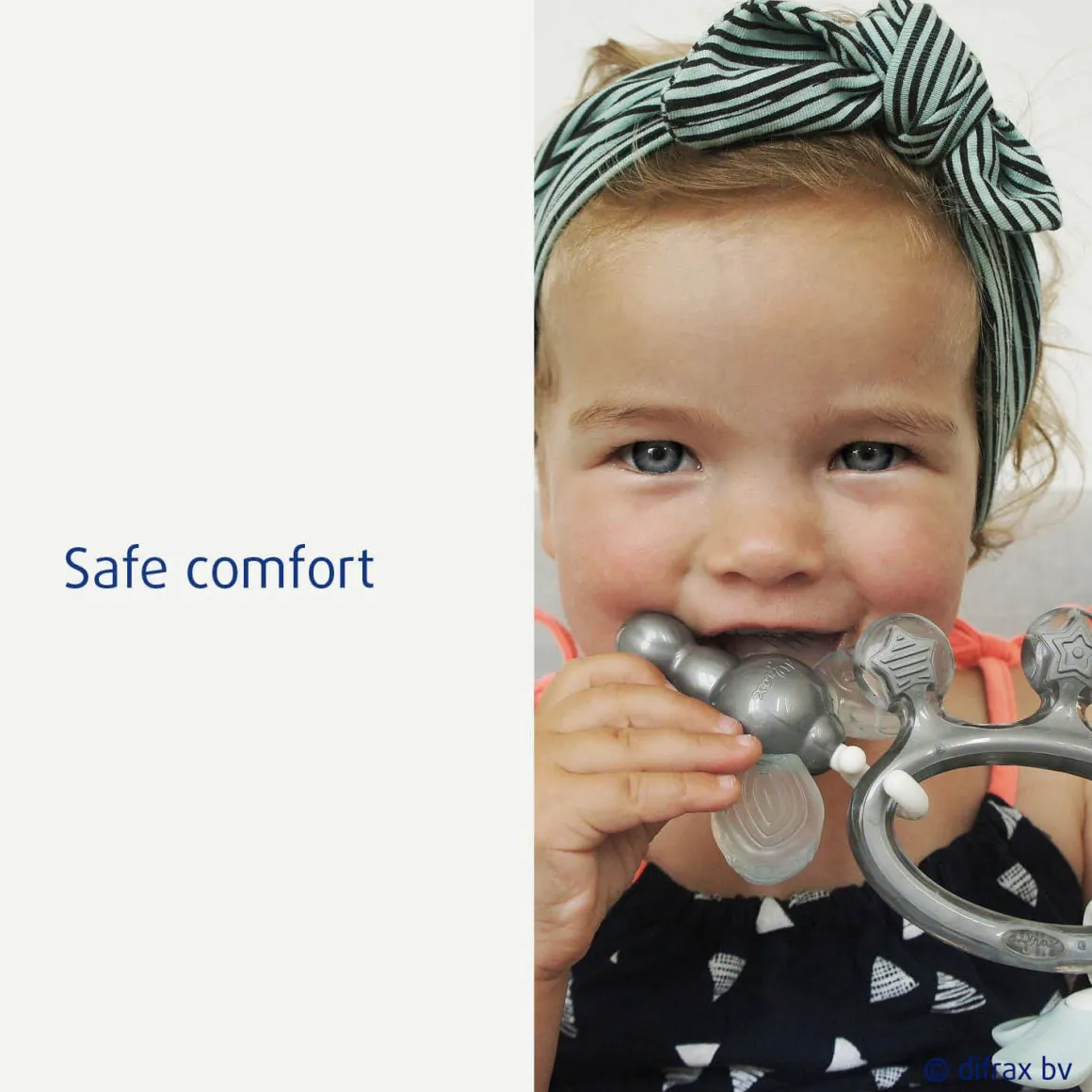 De Difrax Bijtring Bijtjuweel is perfect voor de doorkomende tandjes van jouw kleintje. Het bijtjuweel bestaat uit verschillende onderdelen die los gehaald kunnen worden. Geschikt vanaf 6+ maanden.