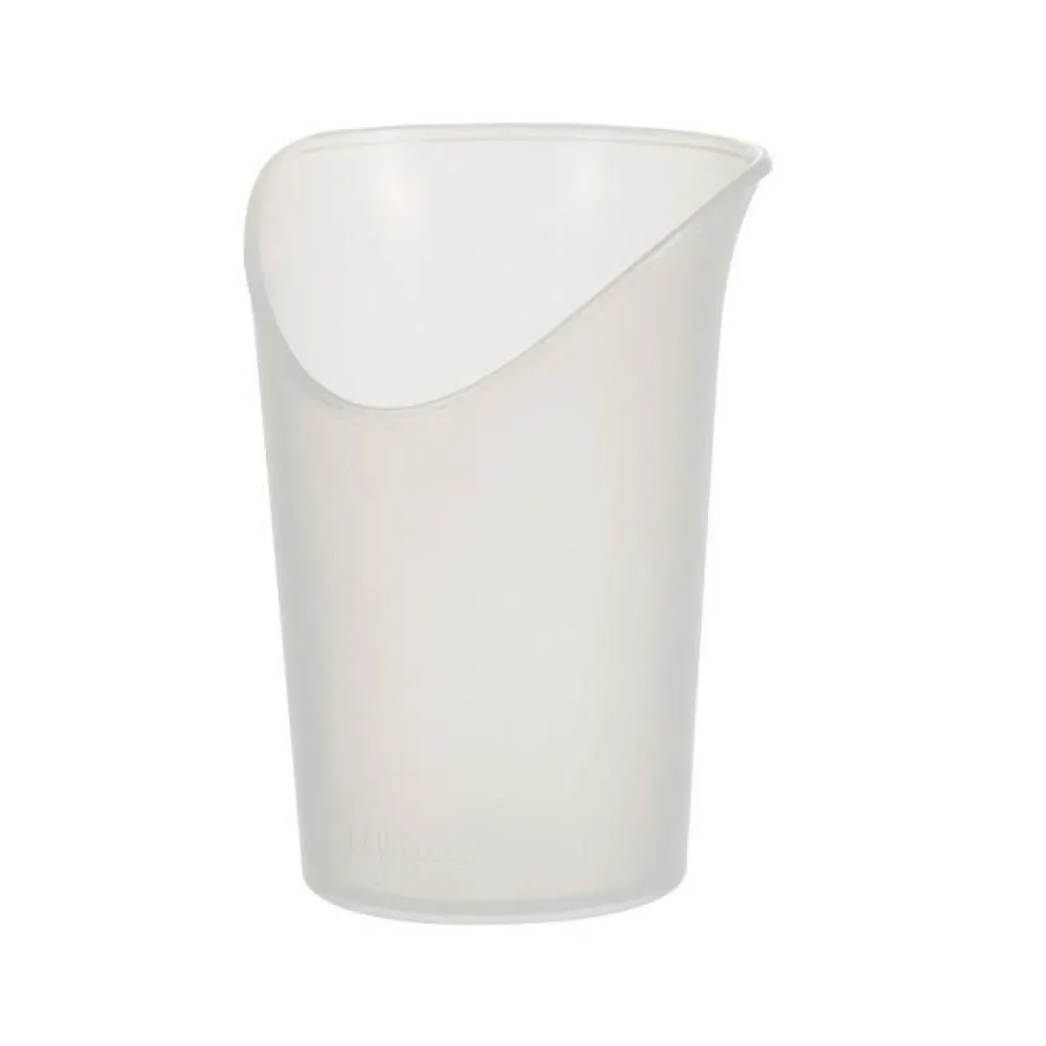 Dankzij de neusuitsparing, stimuleert de oefenbeker de juiste drinkhouding en kan je kindje het hoofd recht houden, in plaats van achterover te buigen. Slikken gaat hierdoor ook makkelijker.