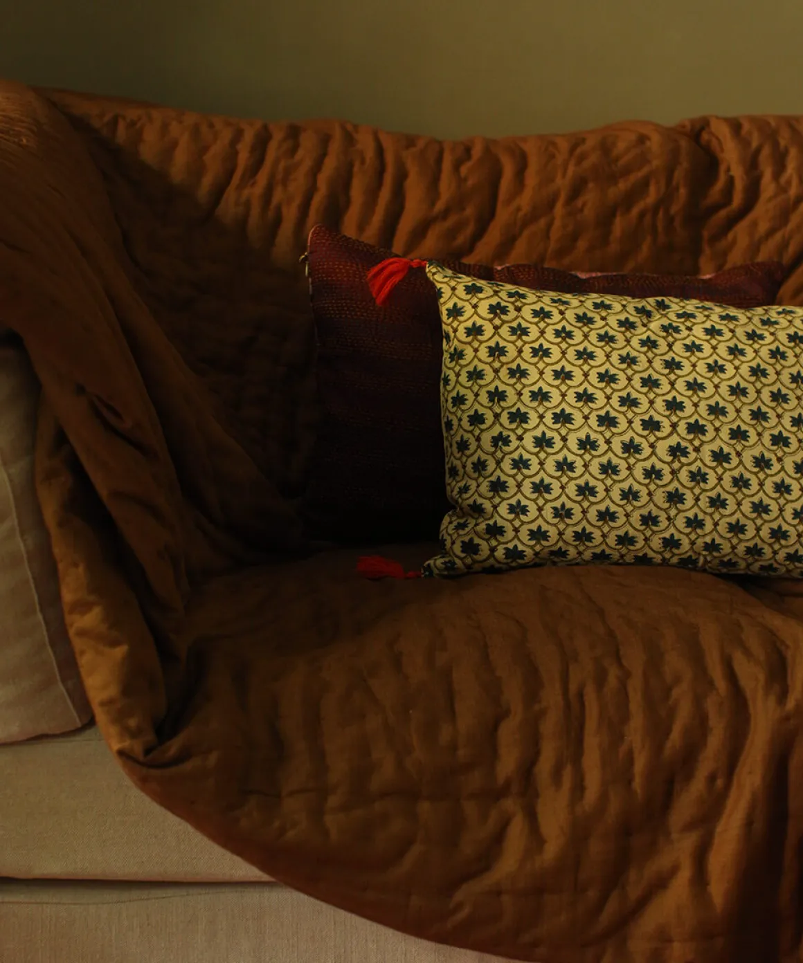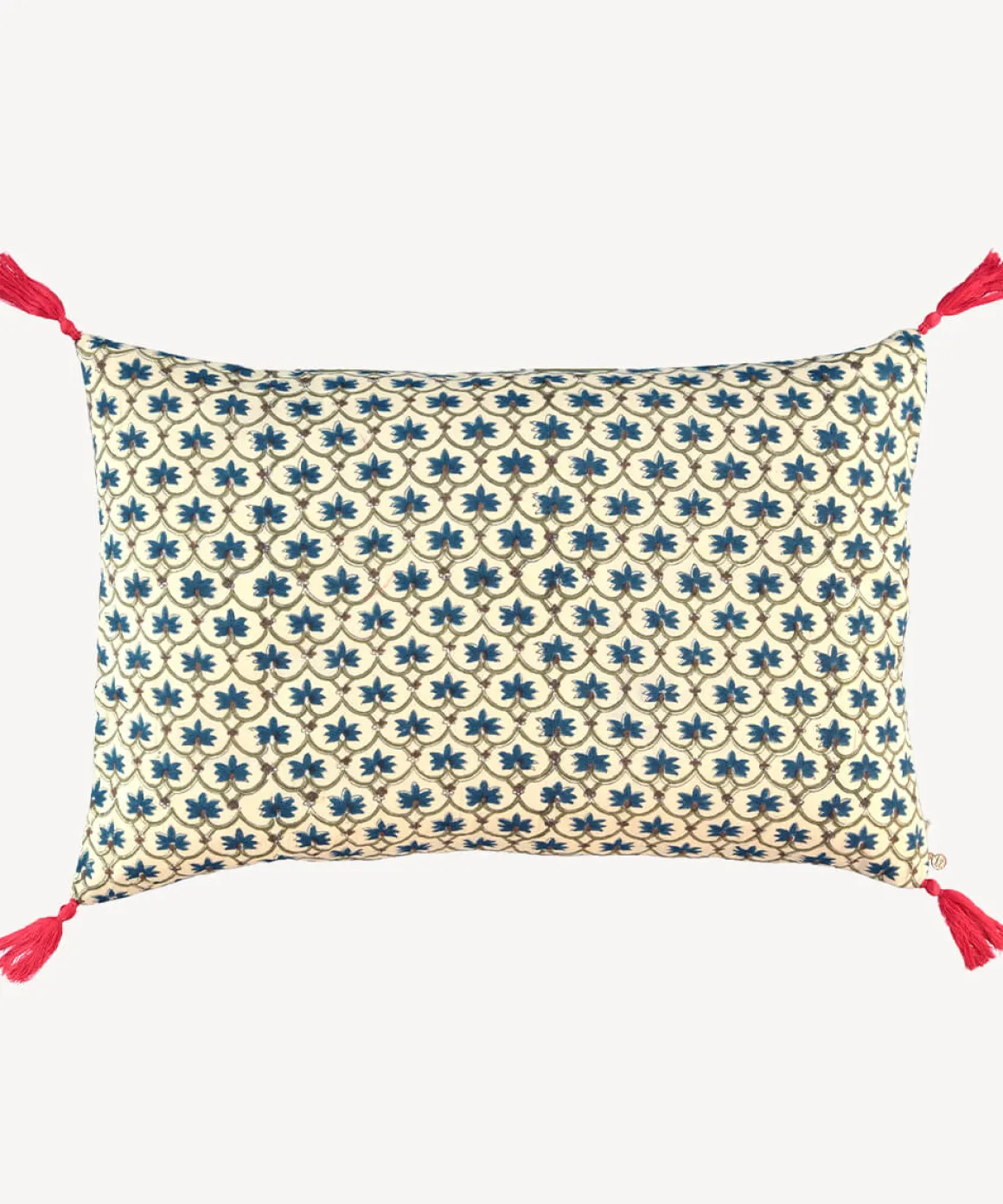 Blokprinten is een eeuwenoude techniek voor het bedrukken van textiel, waarbij elke print met de hand wordt aangebracht. Het Faina Pillow omarmt deze traditionele methode en creëert zo unieke en levendige ontwerpen die de aandacht trekken en de ruimte opfleuren.