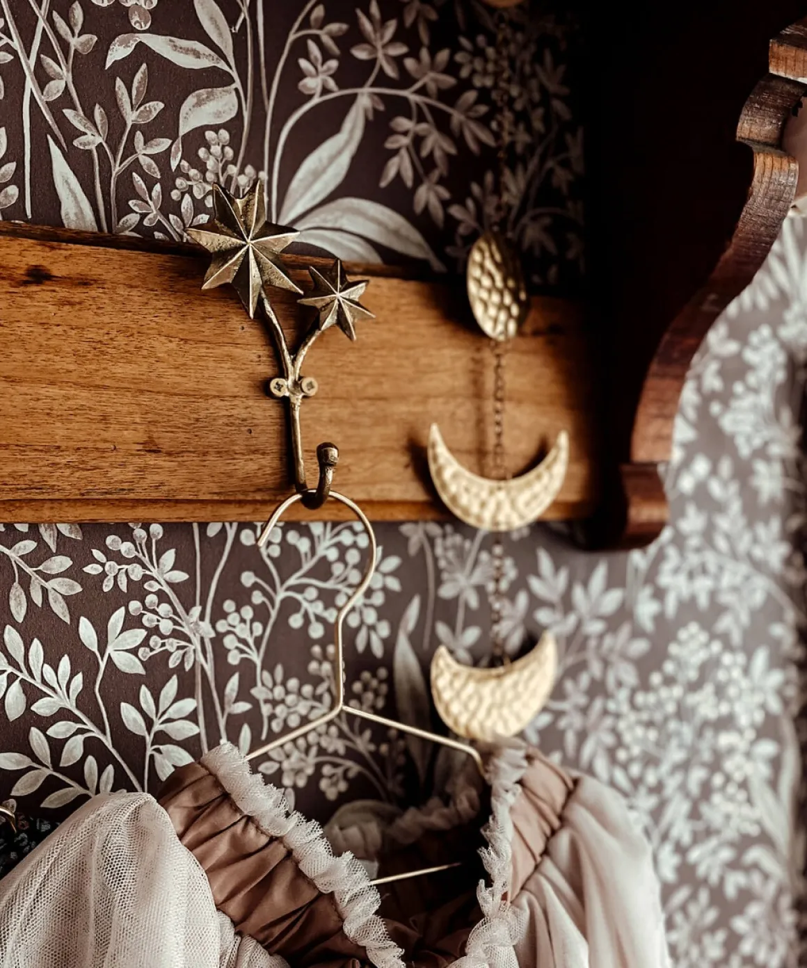 Voeg een vleugje magie toe aan de babykamer met de Doing Goods Wandhaak Oda Shooting Star! Aan de wandhaak met twee sterren kan bijvoorbeeld een badjasje of een kledingsetje worden opgehangen.