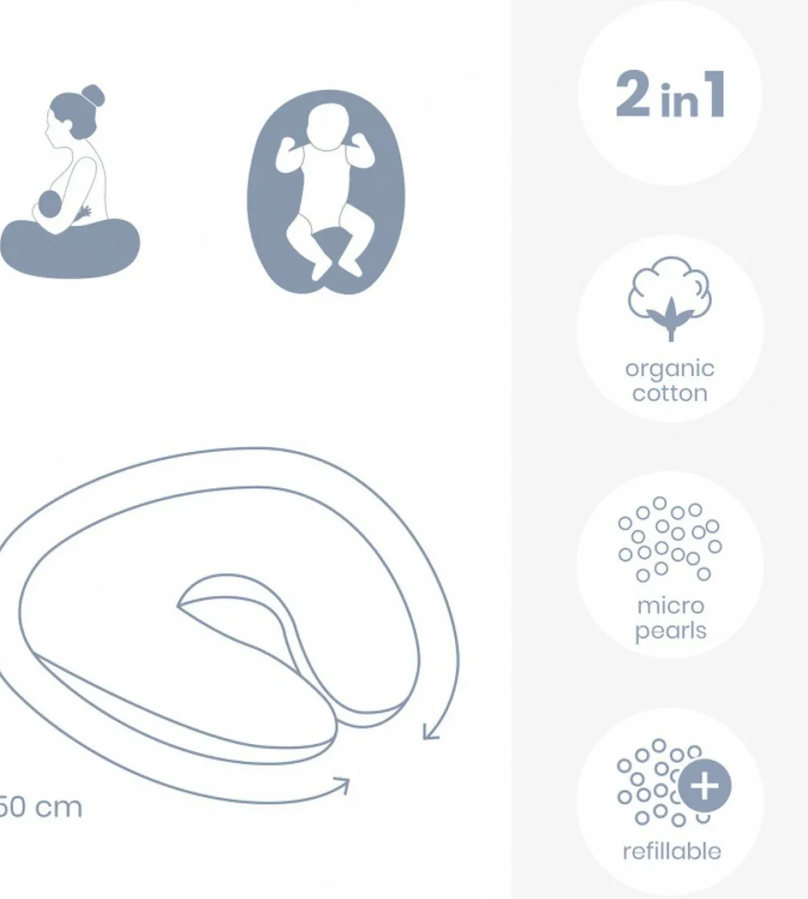 Het kussen bevestig je rondom je taille tijdens het voeden van je kindje. Zo geeft het kussen je steun en comfort als je lang in deze houding moet zitten. Ook is het kussen een fijne ondersteuning voor je kindje. Klaar met voeden? Dan kun je er een heerlijk nestje van maken voor je kindje of een fijne zitpositie voor je kindje creëeren.