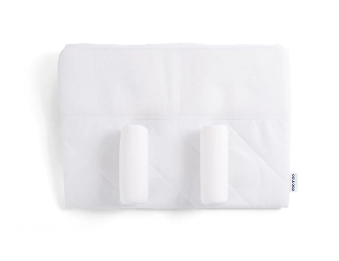 De Doomoo Supreme Sleep Large rugliggingsteun zorgt ervoor dat de baby comfortabel op zijn rugje kan liggen en voorkomt ook het risico van plagiocefalie (“afgeplat hoofdje”). De steun bestaat uit een hellend vlak in schuim met viscoelastisch geheugen en twee zijrollen, bevestigbaar met behulp van klittenband. Het schuim met viscoelastisch geheugen vormt zich perfect rond het hoofdje van de zuigeling waardoor deze geen enkele druk ondergaat. De rugliggingsteun is gemaakt uit luchtdoorlatende stoffen die een perfecte ventilatie en een subliem comfort garanderen. Aanbevolen vanaf de geboorte.