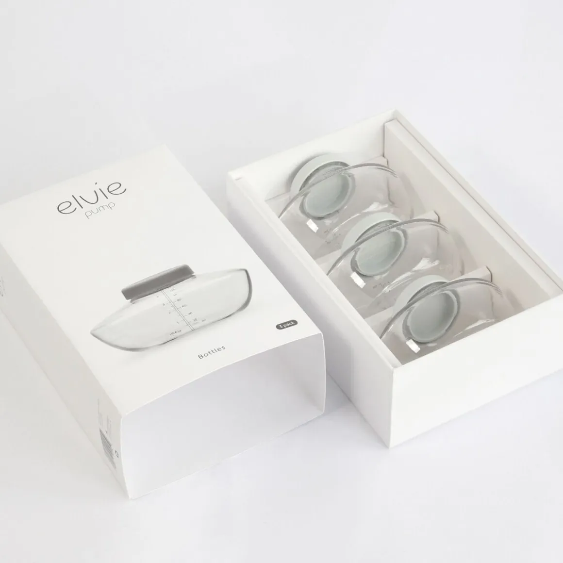 De Elvie flessen 150 ml worden per 3 stuks geleverd en zijn ideaal om moedermelk in op te vangen of te bewaren. De Elvie flessen passen bij de Elvie handsfree elektrische borstkolf, deze is los verkrijgbaar. De flessen zijn BPA vrij en mogen gewoon in de vaatwasser, magnetron, koelkast of vriezer.