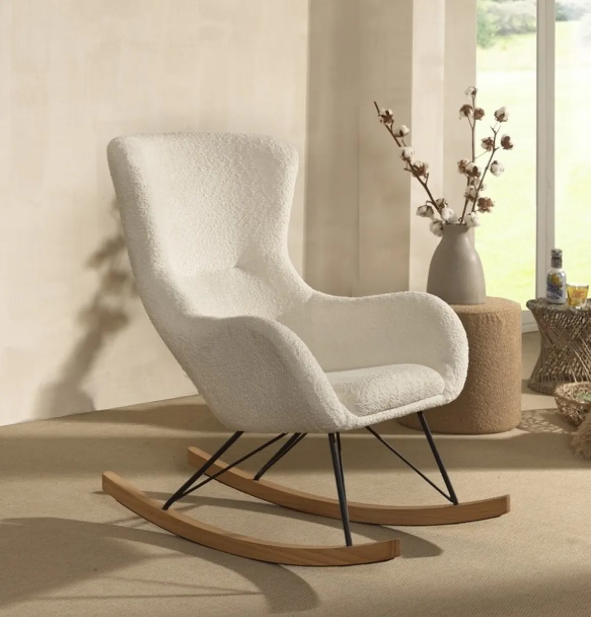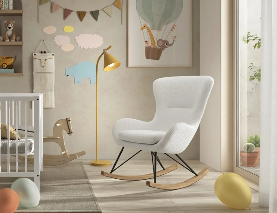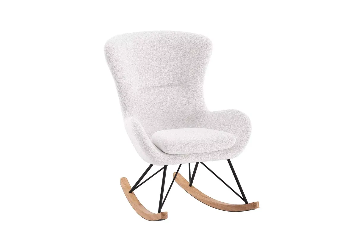 De JAXX Rocky Schommelstoel Maxi in wit bouclé combineert comfort met een trendy design. Deze stijlvolle schommelstoel is een perfecte aanvulling op de babykamer, kinderkamer of zelfs de woonkamer. Dankzij de ergonomische vormgeving biedt de stoel optimale ondersteuning, terwijl de zachte boucléstof zorgt voor een warme en uitnodigende uitstraling.