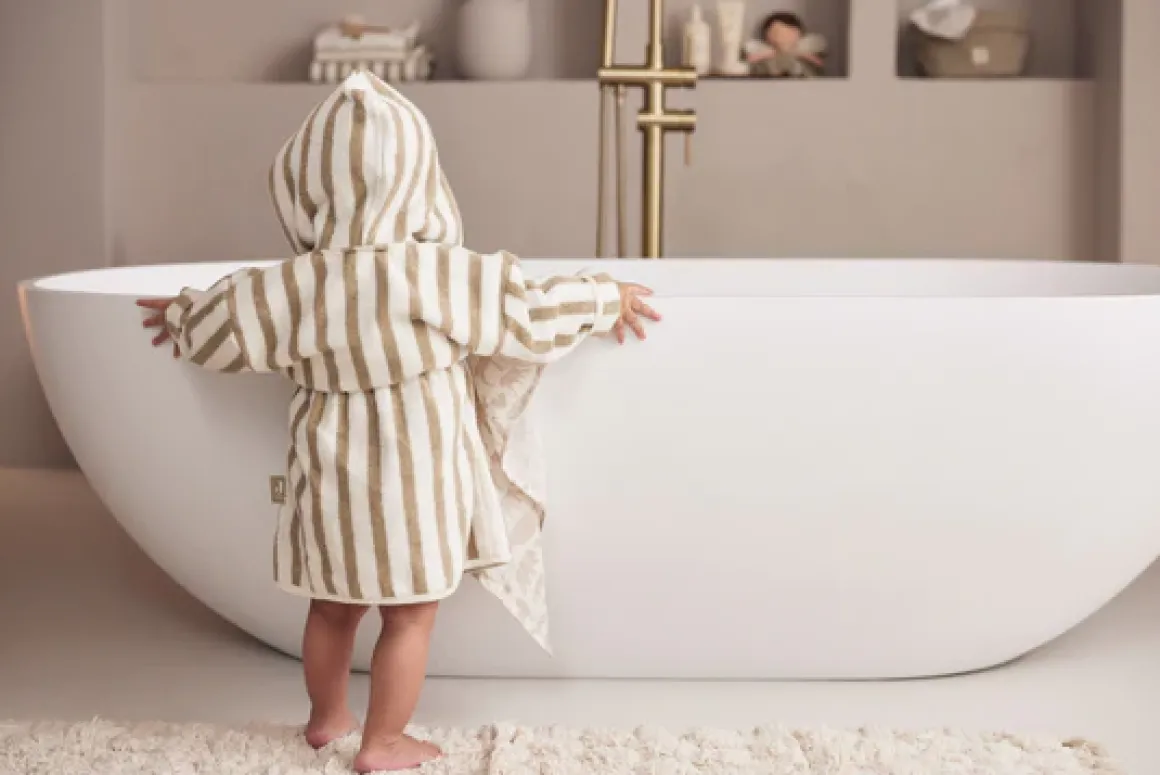 De badjasjes zijn ontworpen met handige details, zoals een capuchon die het hoofdje warm houdt, een drukknoopje voor een perfecte pasvorm en een praktische band om de badjas stevig vast te strikken. Zo blijft alles op zijn plek terwijl je kleintje geniet van het afdrogen en relaxen.