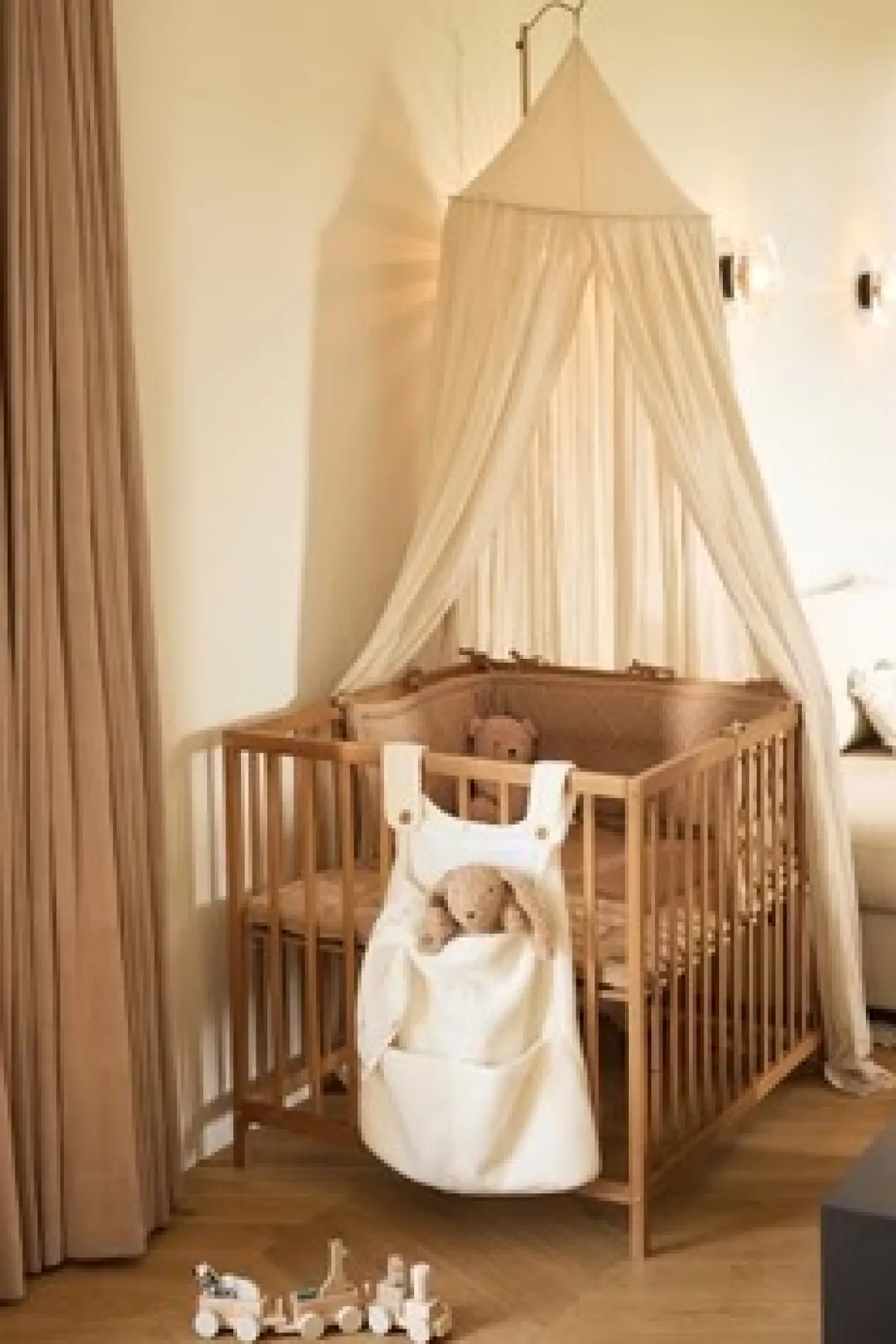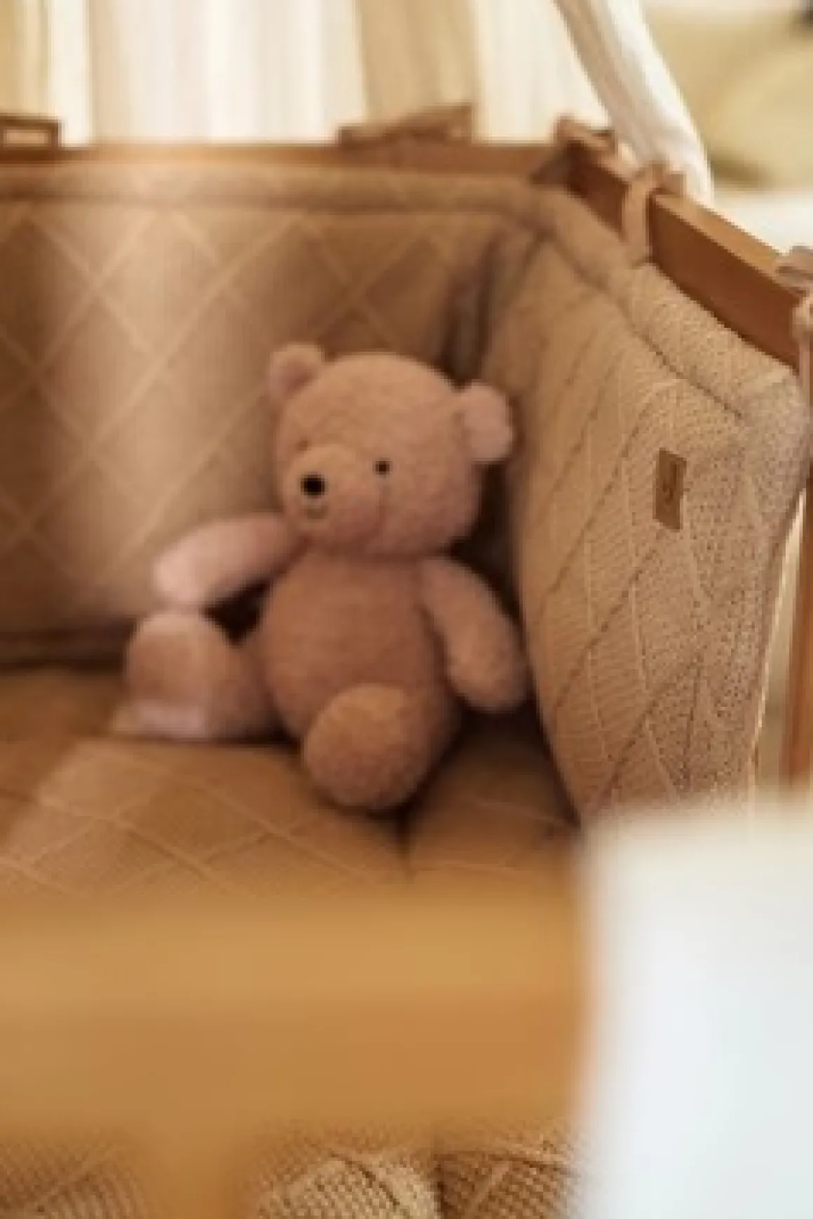 Het boxkleed heeft een stijlvol ontwerp met een gebreide bovenkant. Het schattige patroon geeft de box een rustige en sfeervolle uitstraling. Het kleed past moeiteloos in elke moderne babykamer of woonkamer.