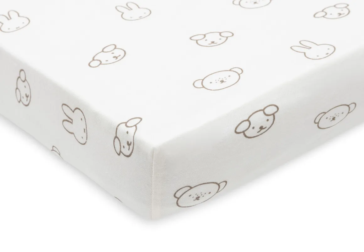 Dit hoeslaken is vervaardigd van 100% katoen, wat zorgt voor een zachte en ademende stof. Het natuurlijke materiaal is huidvriendelijk en zacht voor het gevoelige babyhuidje. Bovendien is katoen ademend, wat helpt om de temperatuur van je baby te reguleren en zorgt voor een comfortabele nachtrust.