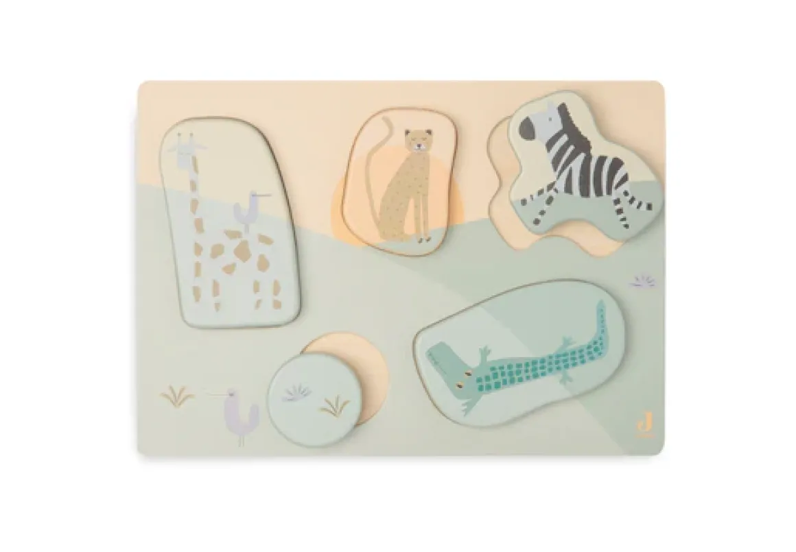 De Jollein Houten Puzzel Jungle Jambo is speciaal ontworpen voor kleine handjes. De puzzelstukken zijn dik en gemakkelijk vast te pakken, zodat je kleintje de puzzel eenvoudig in elkaar kan zetten. Het vrolijke jungle-thema met dieren zoals een olifant, giraffe, en leeuw, zorgt voor een speelse en educatieve ervaring. Zo leren kinderen niet alleen puzzelen, maar ook de namen en vormen van verschillende dieren kennen.