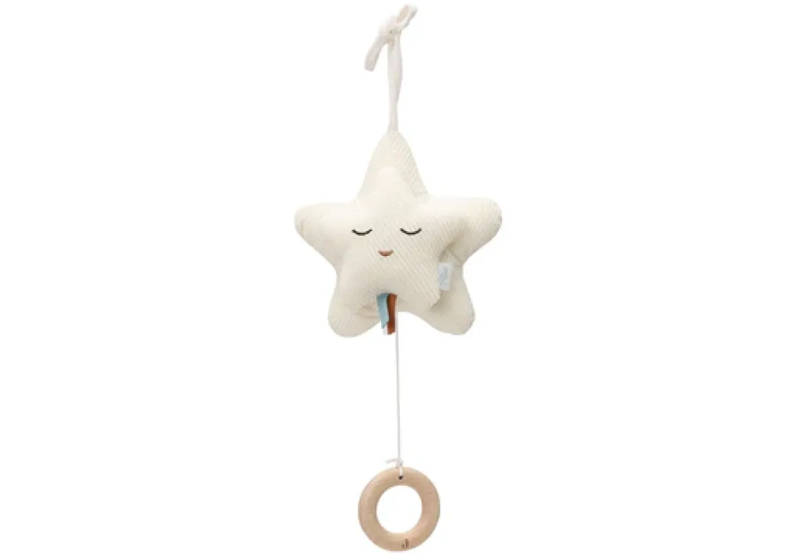De Jollein Muziekhanger is een prachtige toevoeging aan de babykamer. Met zijn zachte ribstof en schattige vorm nodigt hij uit om vast te pakken en te ontdekken. Door aan het koordje te trekken, speelt de muziekhanger het rustgevende nummer “Lullaby”, waardoor je kleintje heerlijk kan ontspannen en wegdromen.
