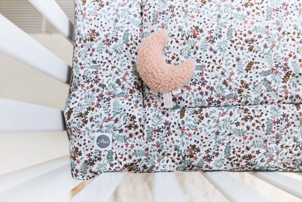 De Jollein Rammelaar Moon Pale Pink is super leuk speelgoed voor jouw kleintje! De Jollein rammelaar is voorzien van een zachte teddy stof en is 11 cm groot. Je hebt keuze uit de kleuren ash green en pale pink.