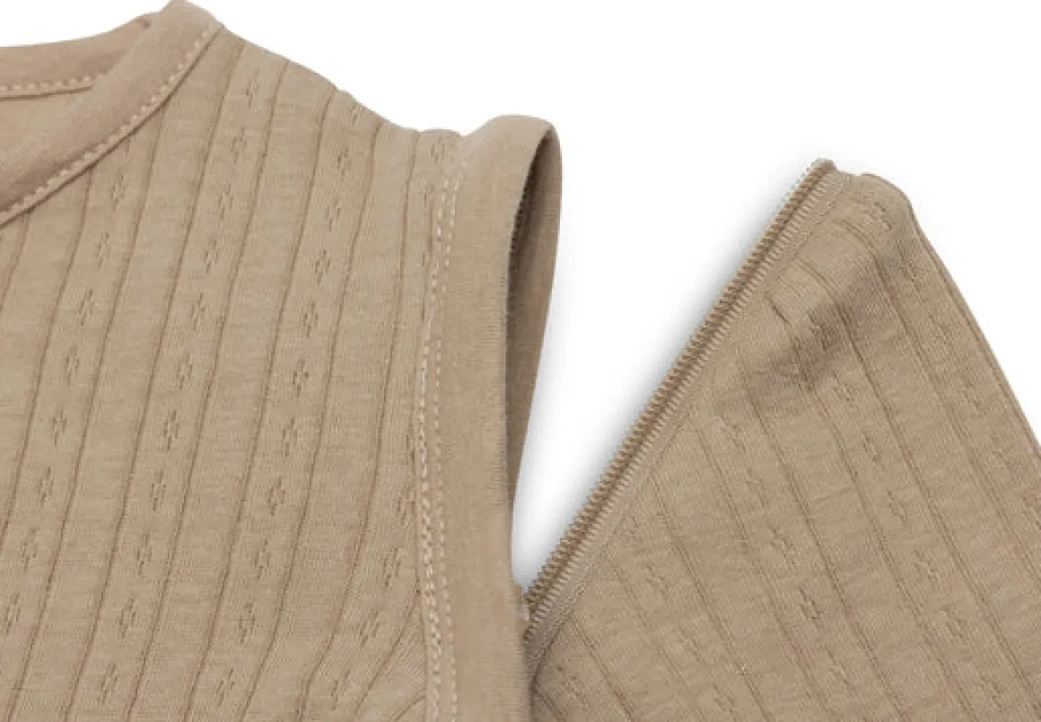 Dankzij de afritsbare mouwen is deze slaapzak perfect aan te passen aan verschillende temperaturen. Zonder mouwen heeft de slaapzak een TOG-waarde van 0.5, ideaal voor warmere nachten. Wanneer het wat kouder wordt, kunnen de mouwen eenvoudig worden aangezet, waardoor de TOG-waarde verhoogt naar 1.0. Zo hoef je niet steeds van slaapzak te wisselen en blijft je kindje altijd op de juiste temperatuur.