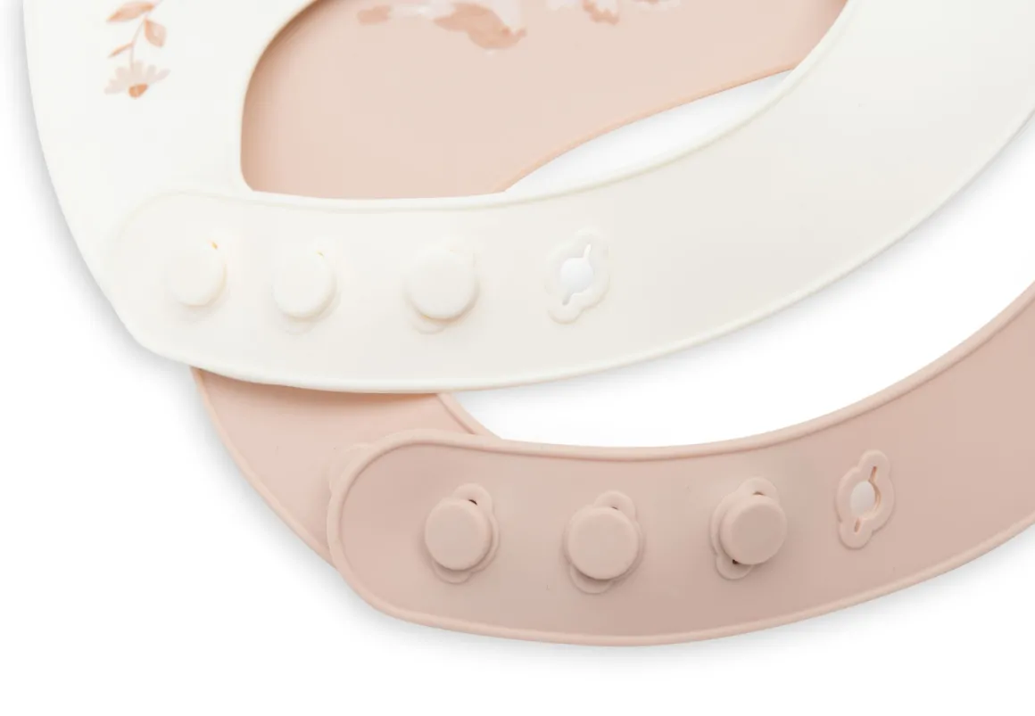 De siliconen slab is flexibel, duurzaam en ontworpen om lang mee te gaan. Door de verstelbare sluiting groeit de slab mee met je kindje, waardoor je hem gedurende lange tijd kunt blijven gebruiken. Bovendien is de slab vaatwasserbestendig en kan hij eenvoudig worden schoongemaakt op een maximale temperatuur van 70 graden. Voor kleine vlekjes kun je de slab ook snel afnemen met een vochtige doek.