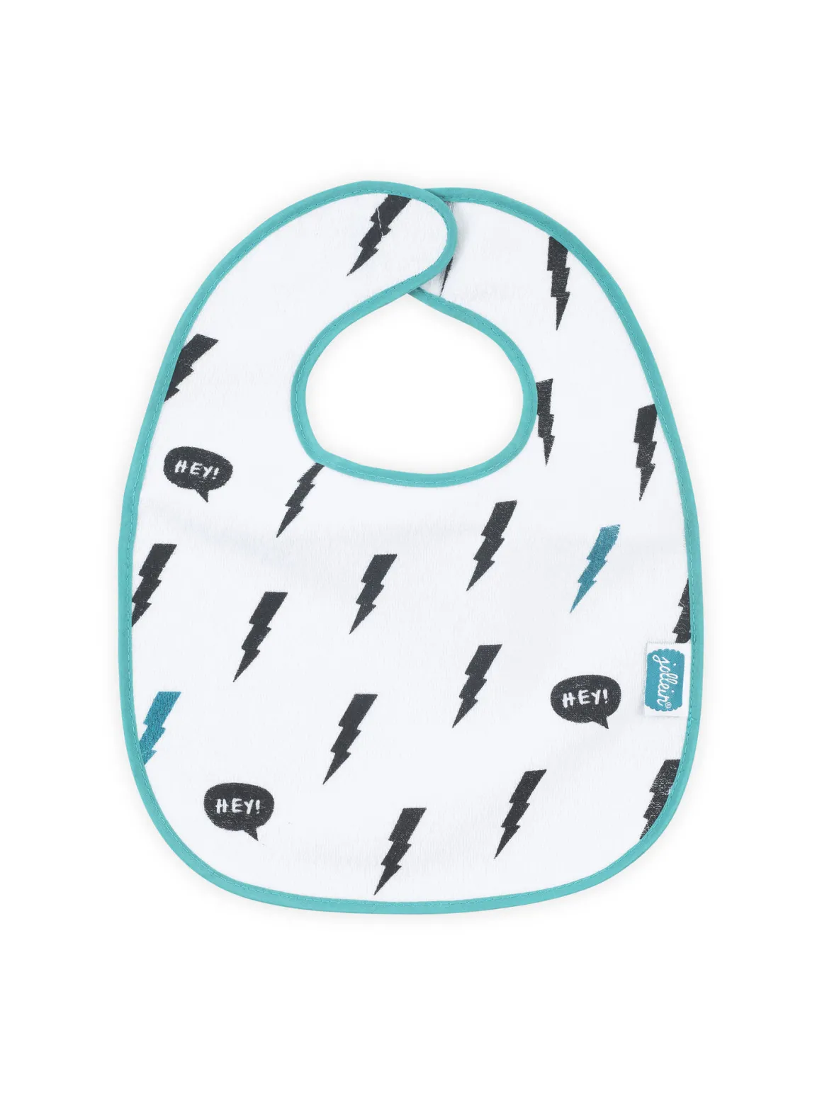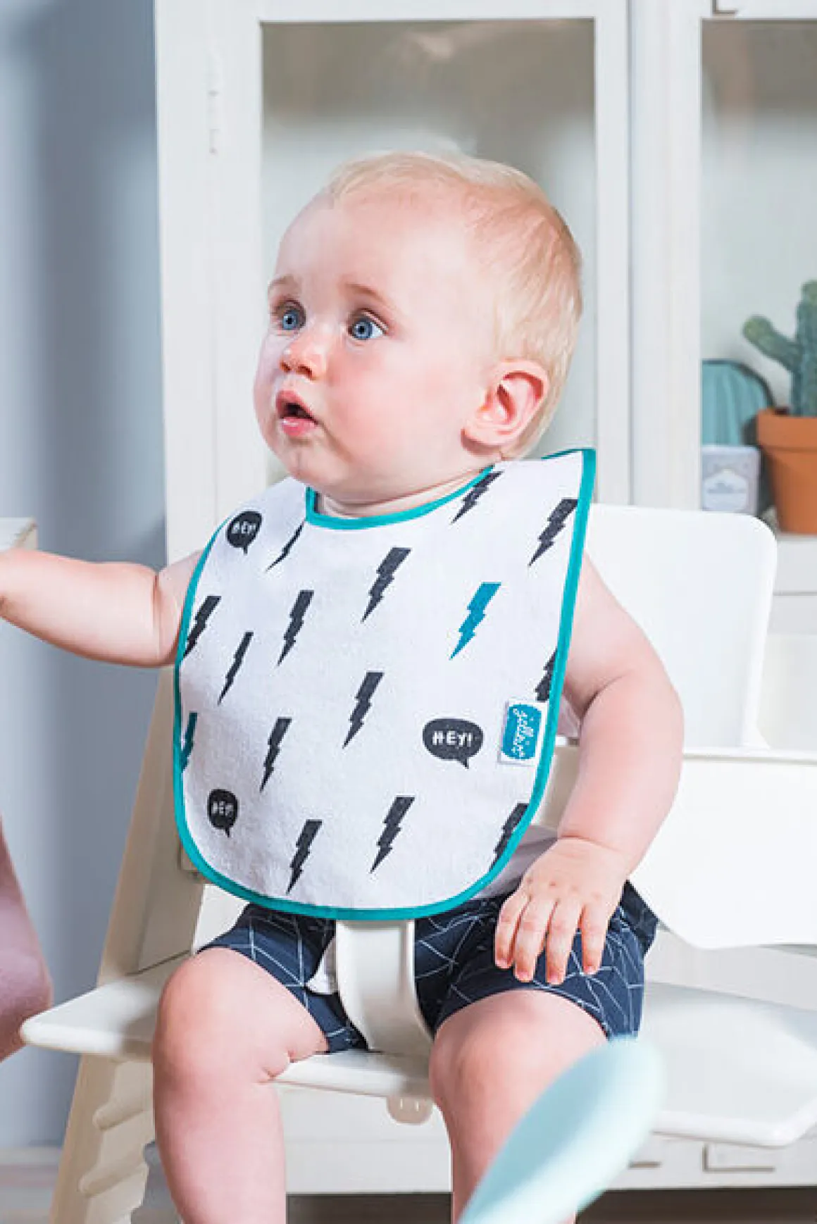 Leuke slabbetjes met een super stoere superheld print en tekst. De slabbetjes zijn wit met een blauwe rand.