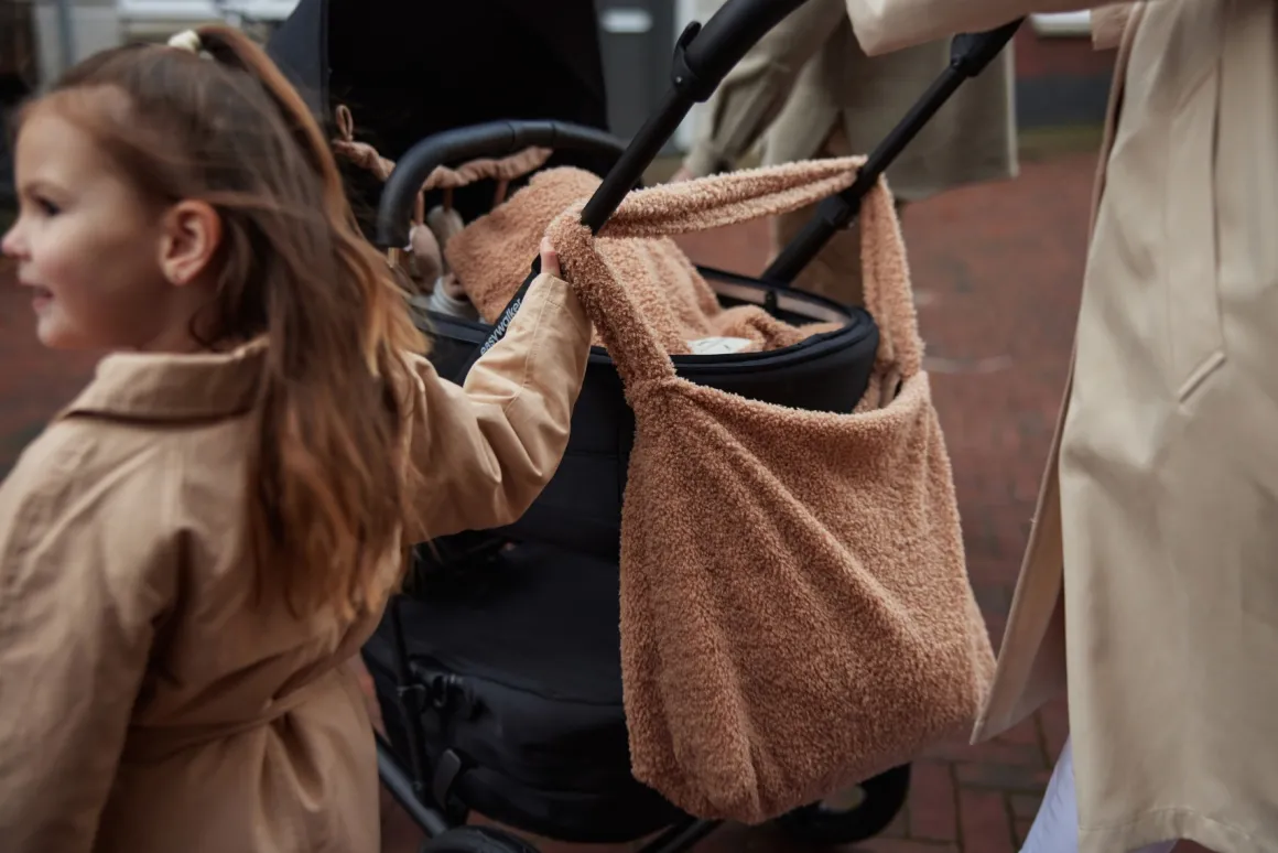 - Verzorgingstas gemaakt van zachte en aaibare bouclé stof