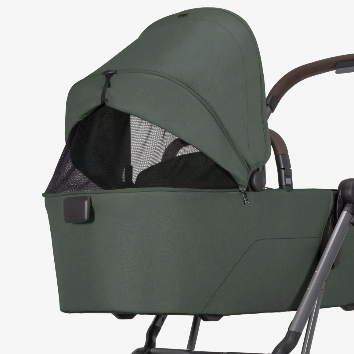 De reiswieg is voorzien van een innovatieve opvouwtechniek, waardoor hij eenvoudig plat kan worden opgevouwen met het frame. Zo hoef je nooit heen en weer te schakelen tussen het zitje en de wieg.