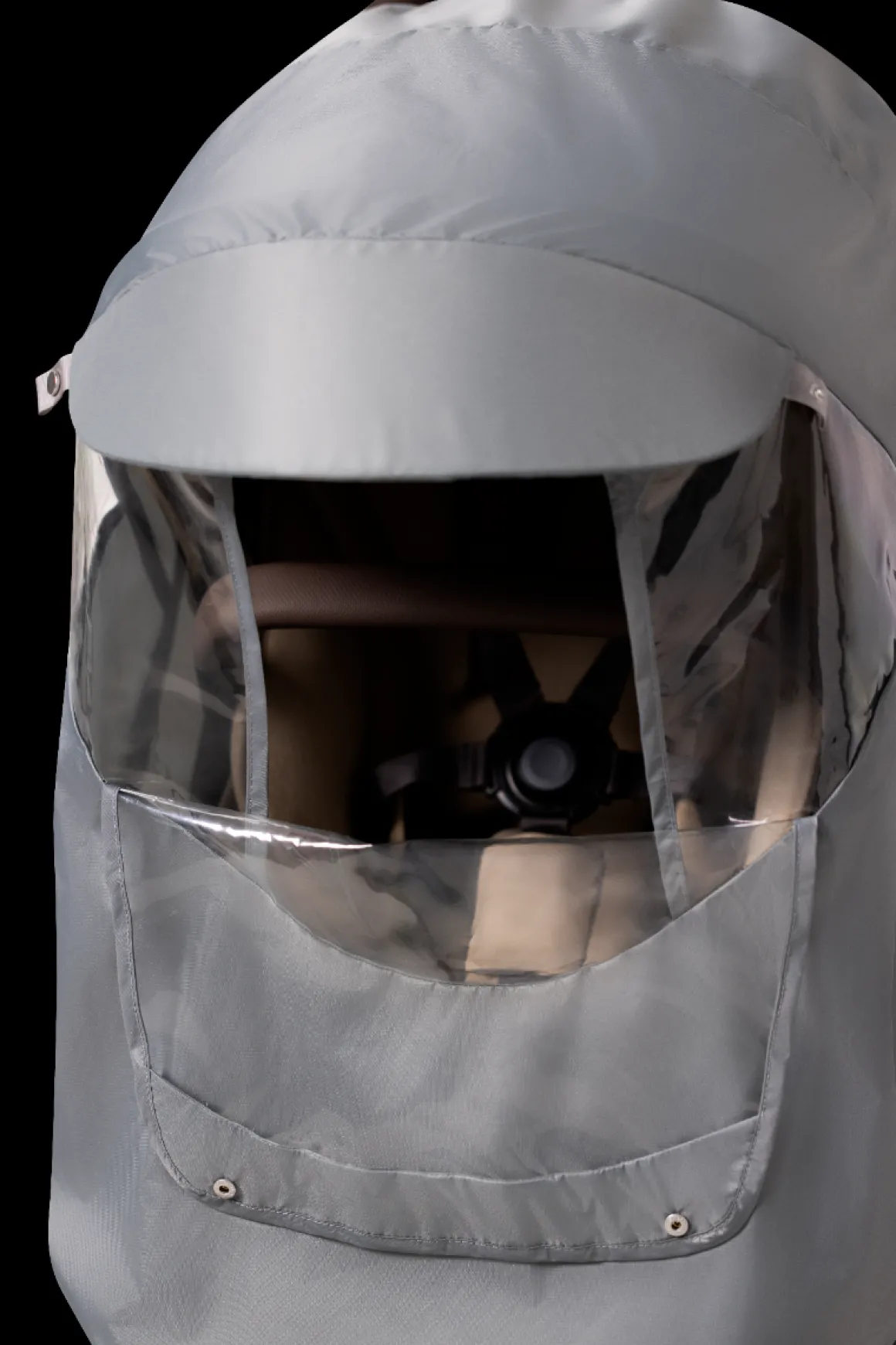 De hoes houd je kindje en de kinderwagen droog. De klep voorkomt dat regen naar binnen druppelt.