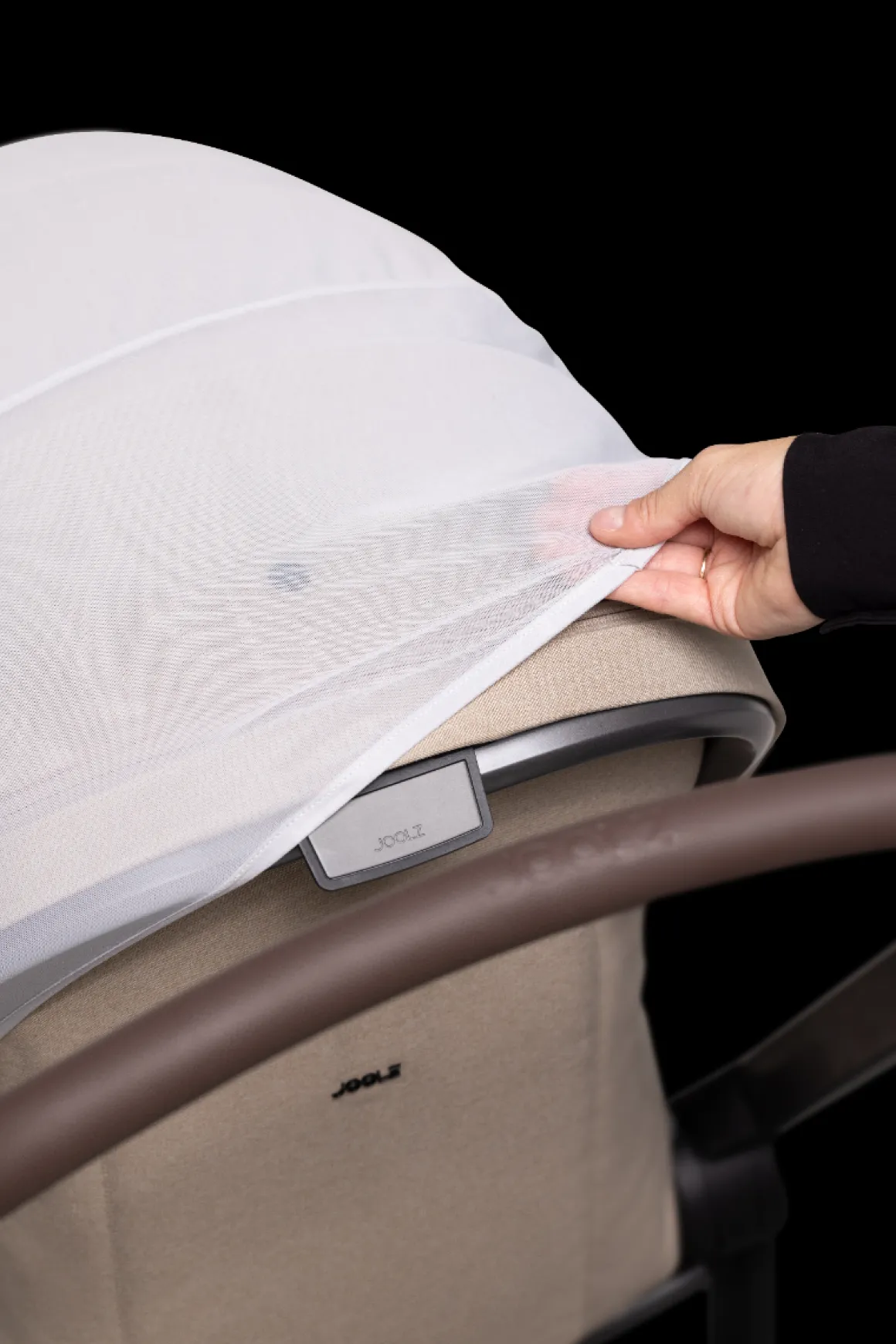 Het Joolz muskietennet beschermt je kindje tegen muggen, vliegen en andere beestjes, zodat jullie ongestoord van het mooie weer kunnen genieten. Het net past naadloos op de reiswieg en zitting van de Joolz kinderwagens. Het superfijne, doorzichtige gaas zorgt ervoor dat de frisse lucht vrij kan circuleren.