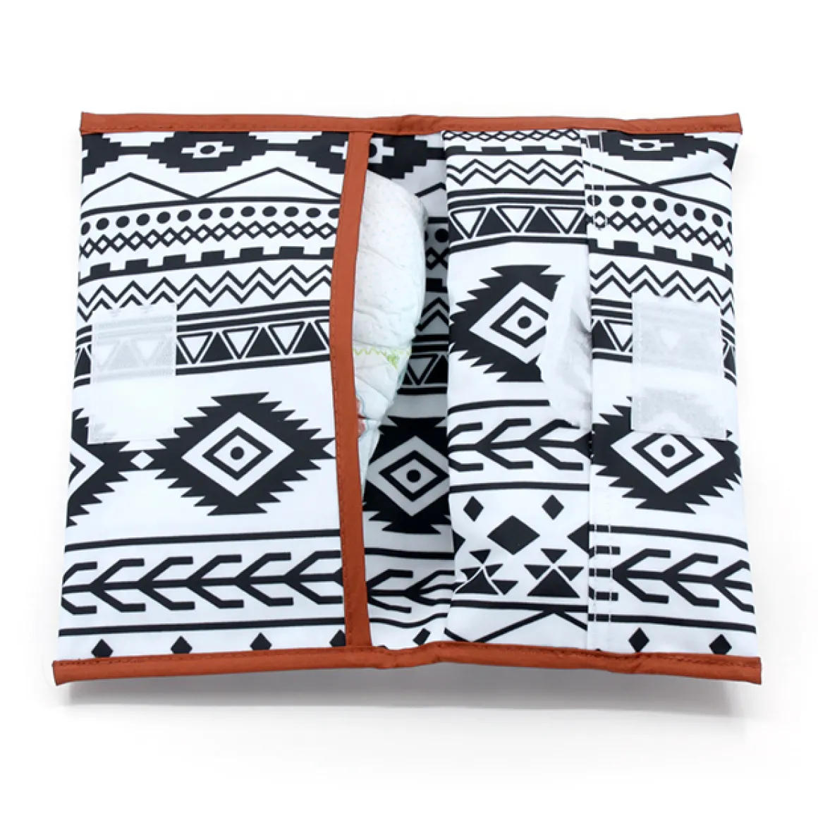Aan de ene kant van de luieretui passen drie tot vier luiers en aan de andere kant kun je een pakje billendoekjes opbergen. Het vakje voor de billendoekjes werkt als een dispenser, door de opening trek je het billendoekje er gemakkelijk uit. De luiertui is gemaakt van duurzaam, waterdicht, 100% pvc vrij materiaal.