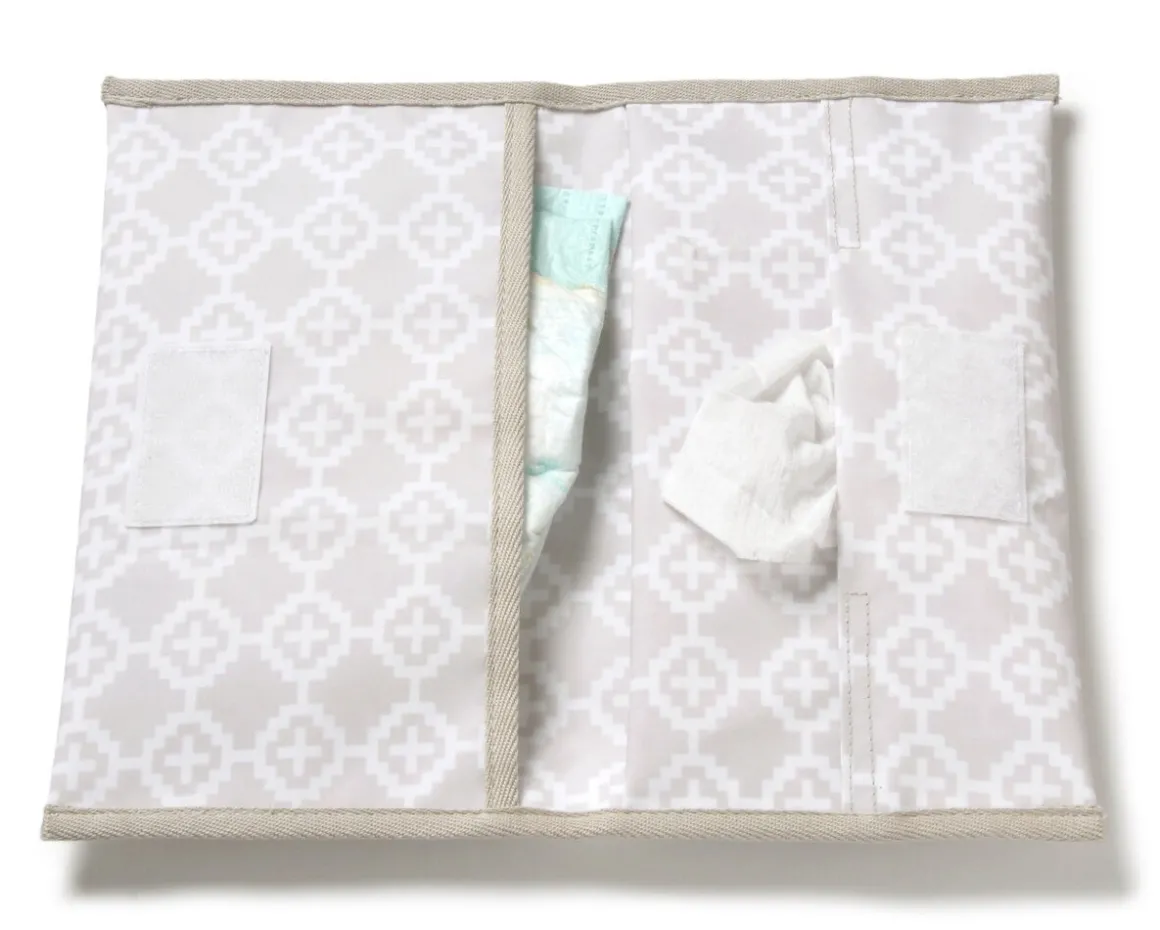 Aan de ene kant van de luieretui passen drie tot vier luiers en aan de andere kant kun je een pakje billendoekjes opbergen. Het vakje voor de billendoekjes werkt als een dispenser, door de opening trek je het billendoekje er gemakkelijk uit. De luiertui is gemaakt van duurzaam, waterdicht, 100% pvc vrij materiaal.