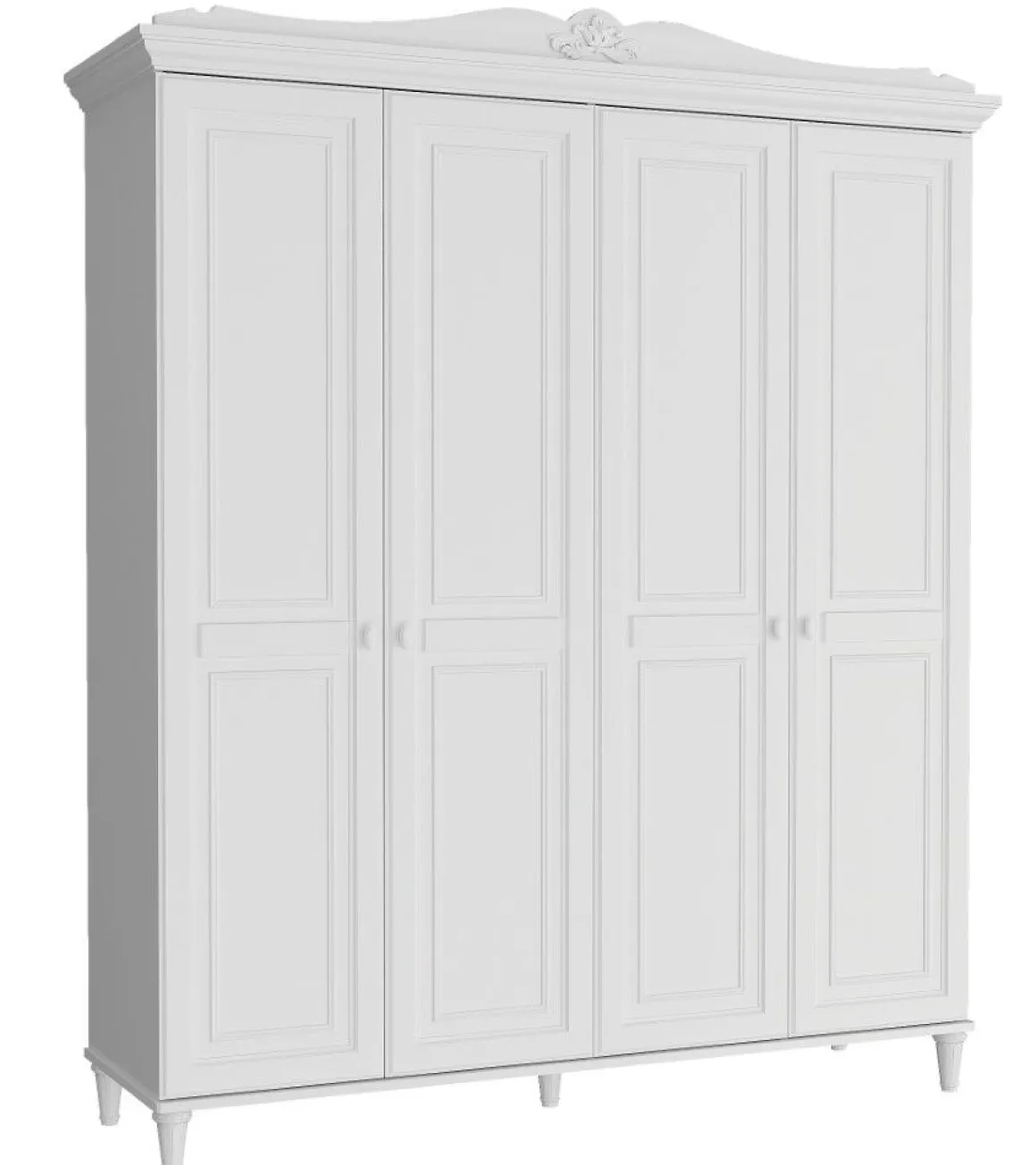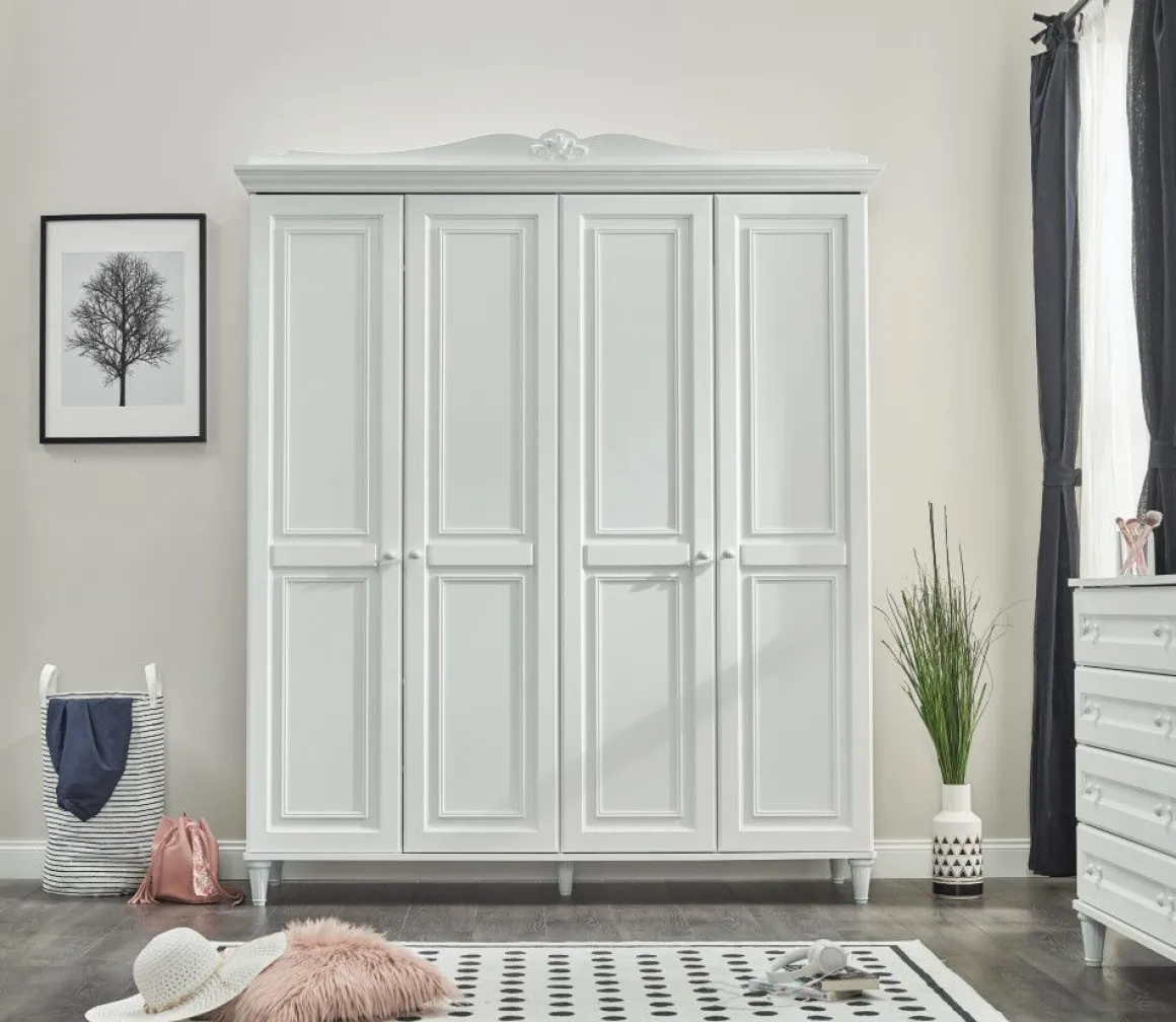 De kledingkast 4 deurs heeft een romantische uitstraling en is een musthave voor in de tienerkamer! De kledingkast is ook verkrijgbaar in een complete tienerkamer.