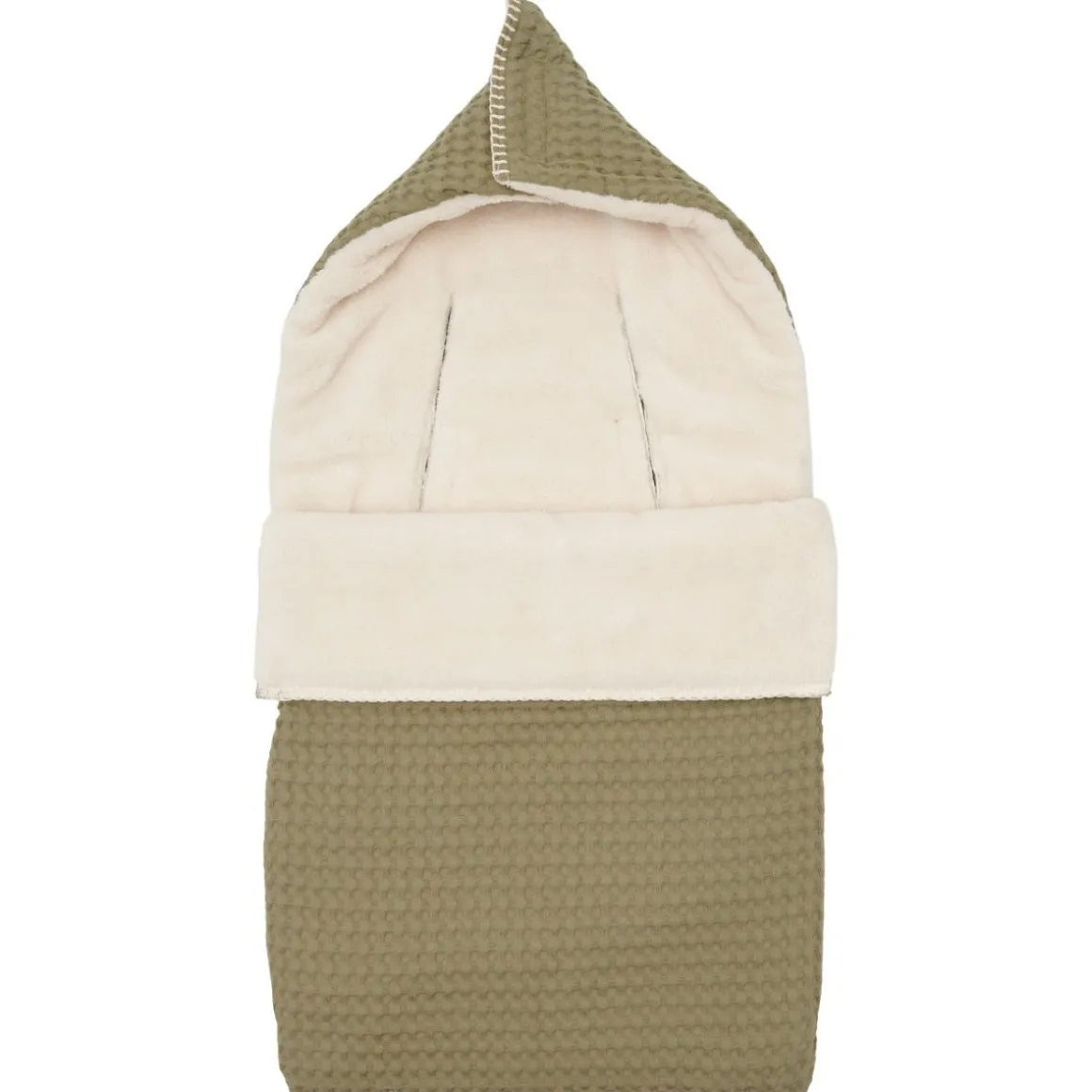 Voor extra warmte en comfort kun je de bovenzijde van de voetenzak sluiten met een klittenbandsluiting, waardoor je een hoodie vormt die het hoofdje van je kleintje bedekt. Dit zorgt voor nog meer bescherming tegen de kou.