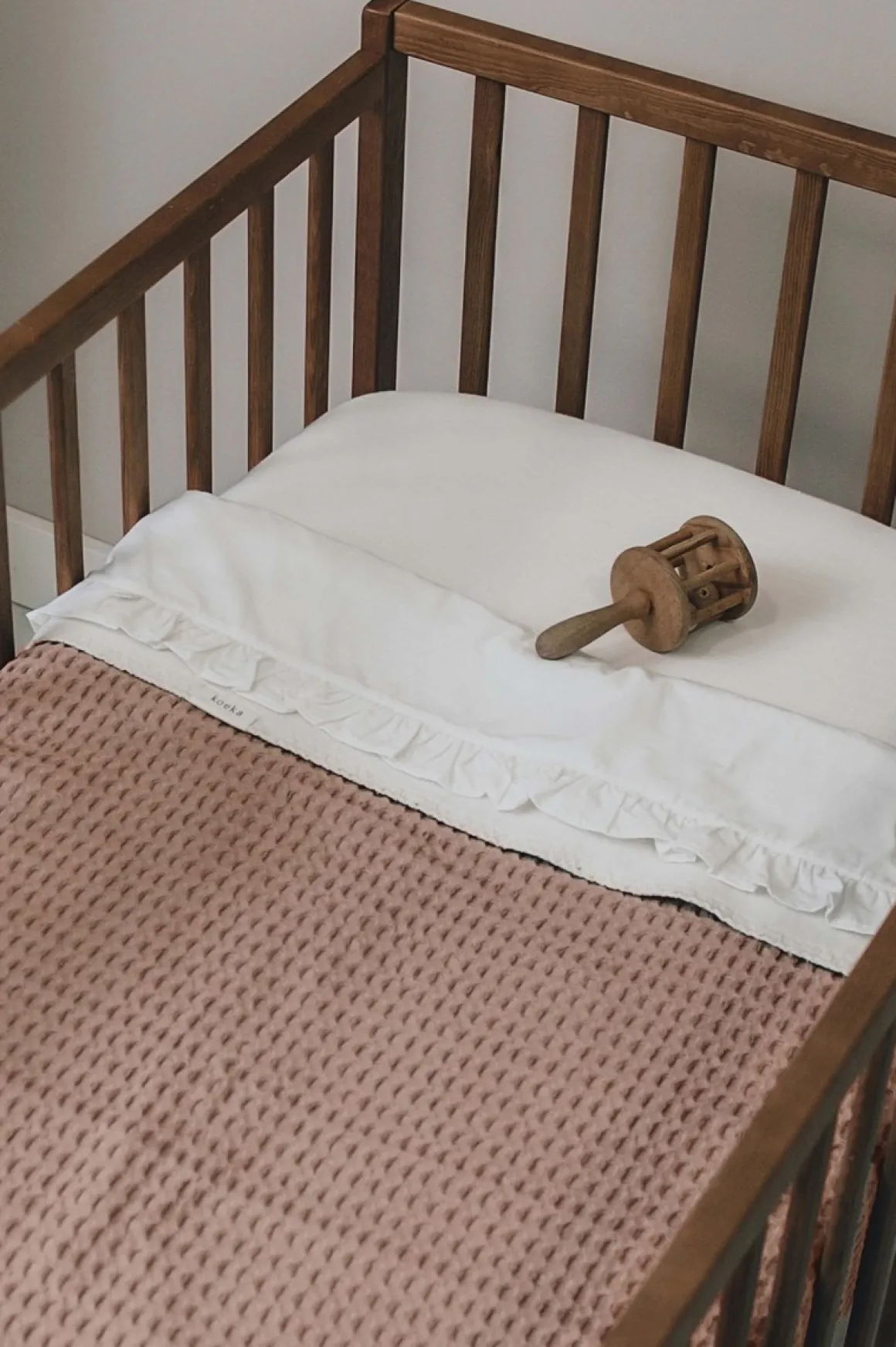 De wafelstof van Koeka geeft een stoere en eigentijdse uitstraling aan deze deken. Met zijn old school retro wafelreliëf is het een tijdloos ontwerp dat zowel ouders als baby’s zal bekoren.