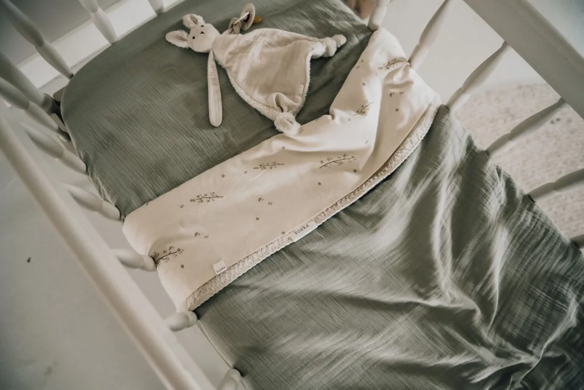 et nu in de wieg, kinderwagen of autostoel is. De hoogwaardige materialen en de duurzame constructie van deze deken betekenen dat je hem keer op keer kunt wassen zonder dat hij aan kwaliteit verliest. Zo geniet je jarenlang van dit prachtige product.