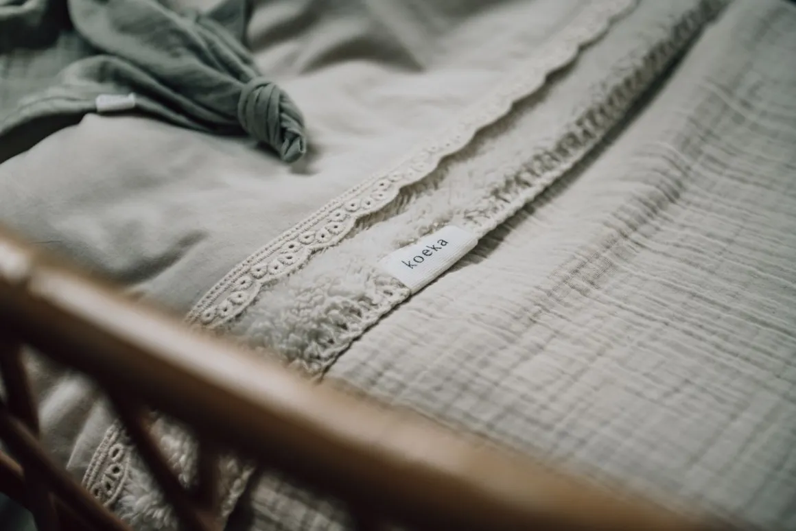 Er is niets fijner dan in slaap vallen tussen vers gewassen beddengoed. Het Koeka Laken Breeze Warm White biedt precies dat: een moment van pure ontspanning en comfort voor je baby.