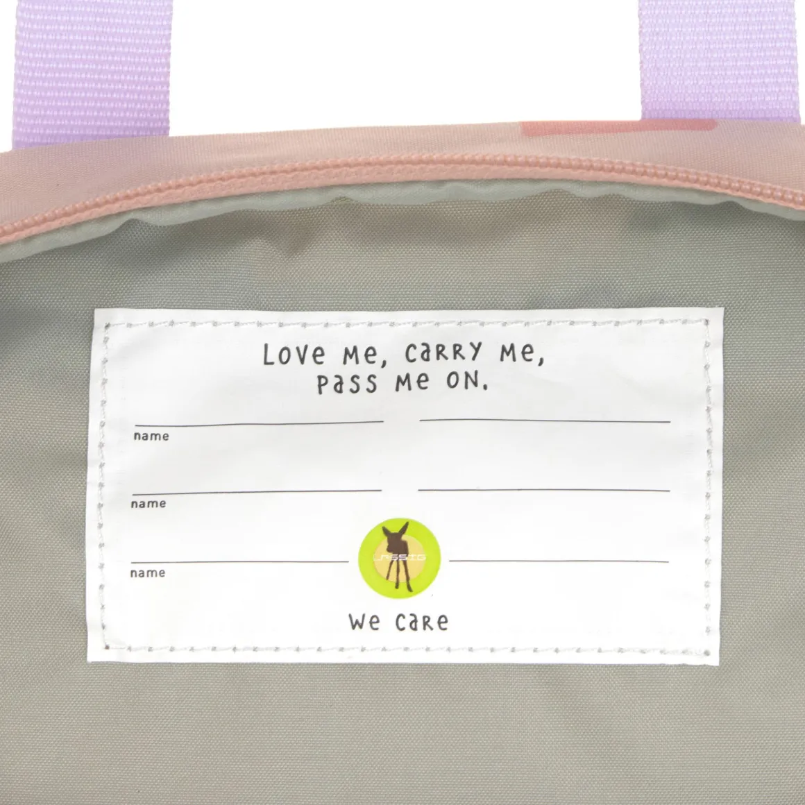 De rugzak is uitgerust met gewatteerde, verstelbare schouderbanden en een borstband die zorgen voor extra stabiliteit en draagcomfort. Dankzij de korte schouderbanden met drukknoop kan de tas eenvoudig worden gedragen of opgehangen. Het lichte gewicht en de zachte buitenstof maken de rugzak bijzonder kindvriendelijk.