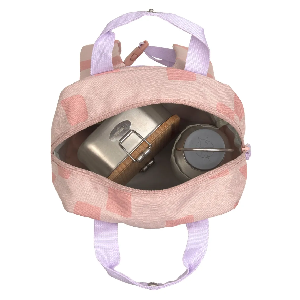 Met een inhoud van 7 liter en afmetingen van 20,5 x 11 x 27 cm biedt de Mini Square rugzak voldoende ruimte voor kleding, snacks en andere benodigdheden. Het ruime hoofdvak heeft een handige insteeklus voor een fles, terwijl het extra voorvak perfect is voor kleinere spullen zoals sleutels of een snackbox. Zo blijft alles overzichtelijk en gemakkelijk bereikbaar.
