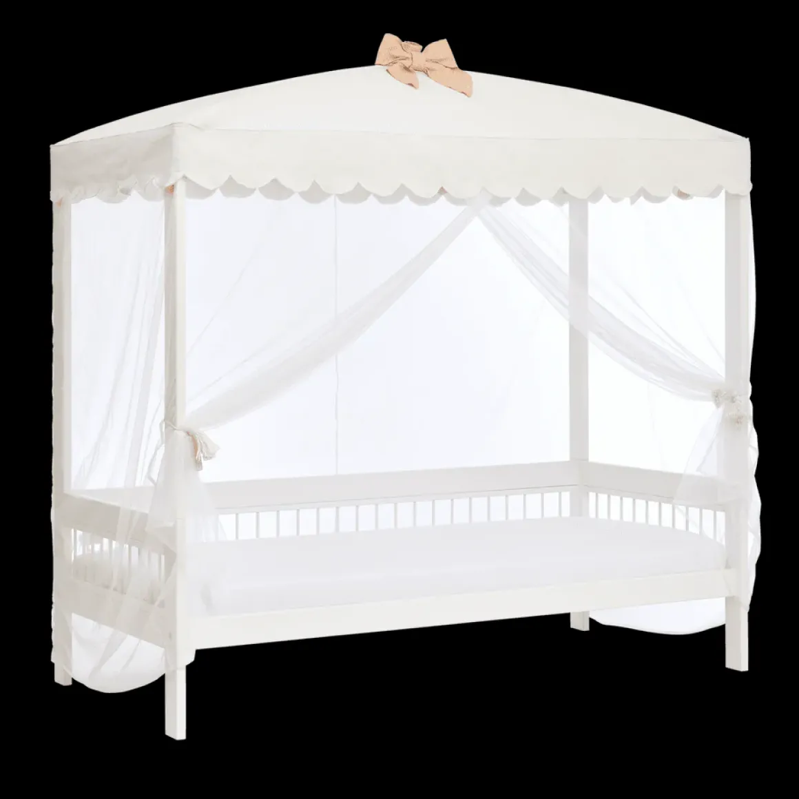 Wat de Cat & Bow hemel bijzonder maakt, zijn de charmante details. De hemel wordt geleverd met een strikvormige top, roze pompons en een speelse kattenhanger die aan de binnenzijde kan worden bevestigd. Deze elementen zorgen voor een unieke uitstraling en geven de kinderkamer een vrolijke en persoonlijke sfeer.