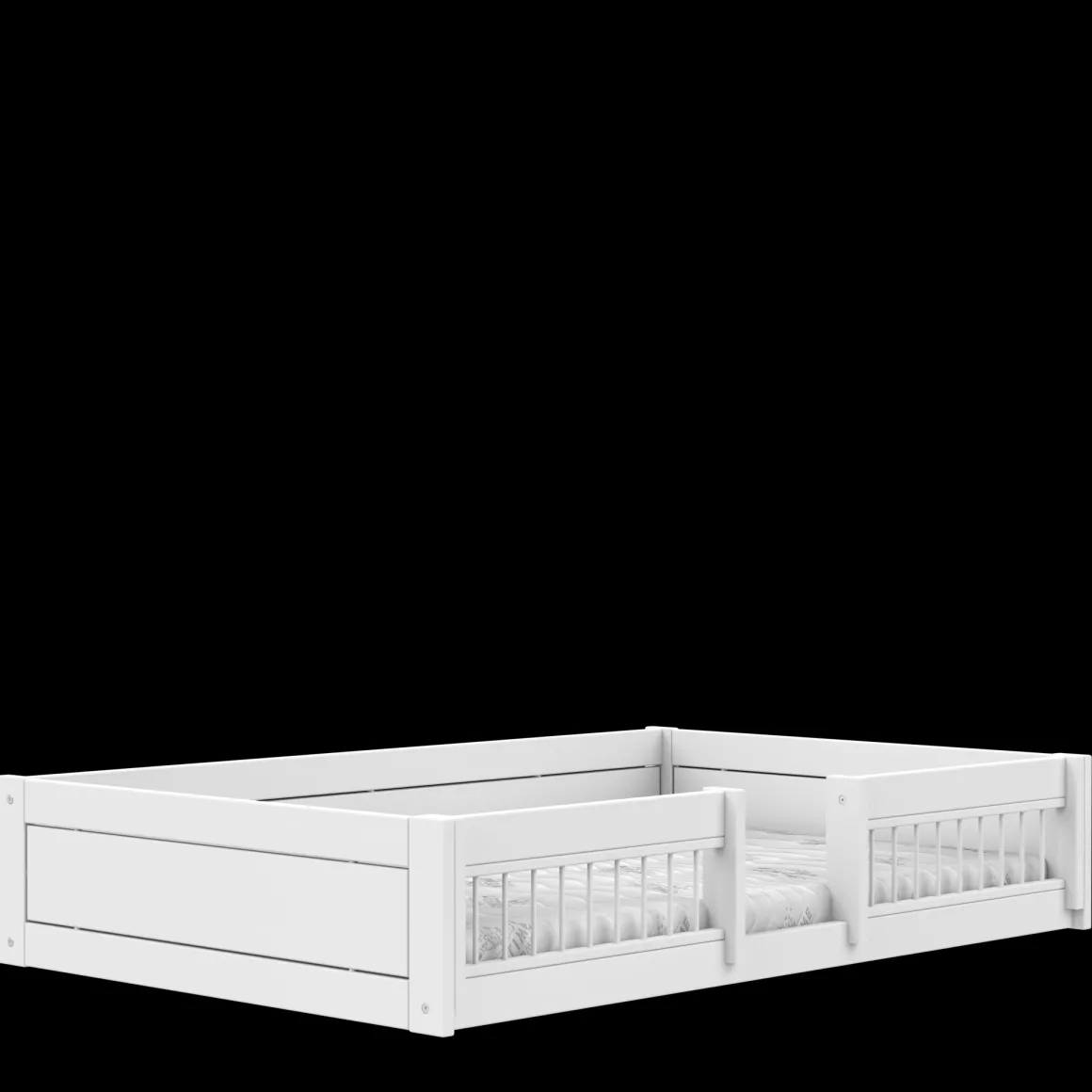 Met een totale afmeting van H39 x L207 x B132 cm past dit bed perfect in elke kinderkamer. Dankzij de lage hoogte van slechts 2 cm boven de vloer is de veiligheid van je kind altijd gewaarborgd. Het neutrale design sluit eenvoudig aan bij diverse interieurstijlen en kan met accessoires worden aangekleed om het bed volledig naar wens in te richten.